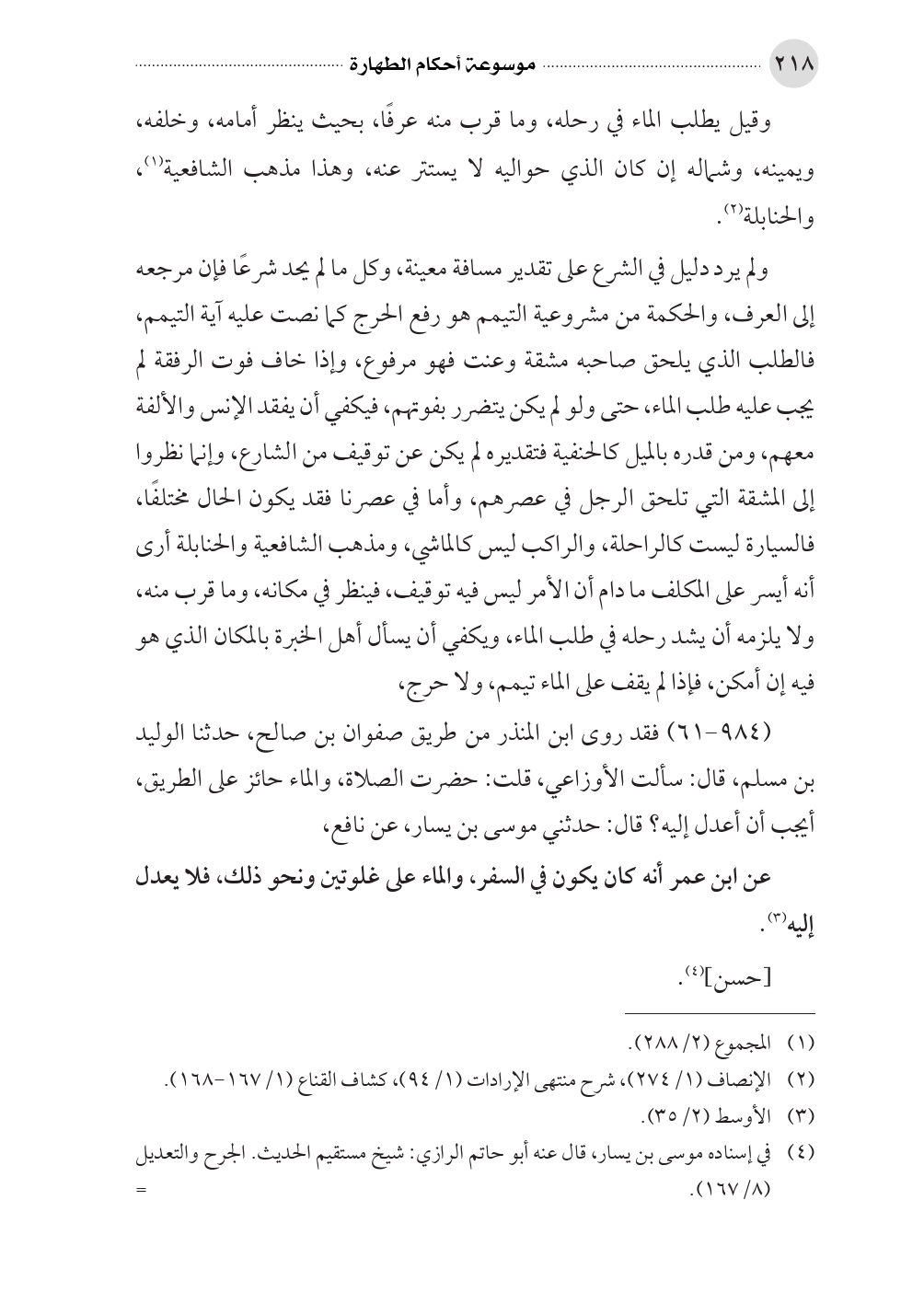 (¬٢) الإنصاف (١/ ٢٧٤)، شرح منتهى الإرادات (١/ ٩٤)، كشاف القناع (١/ ١٦٧ - ١٦٨).