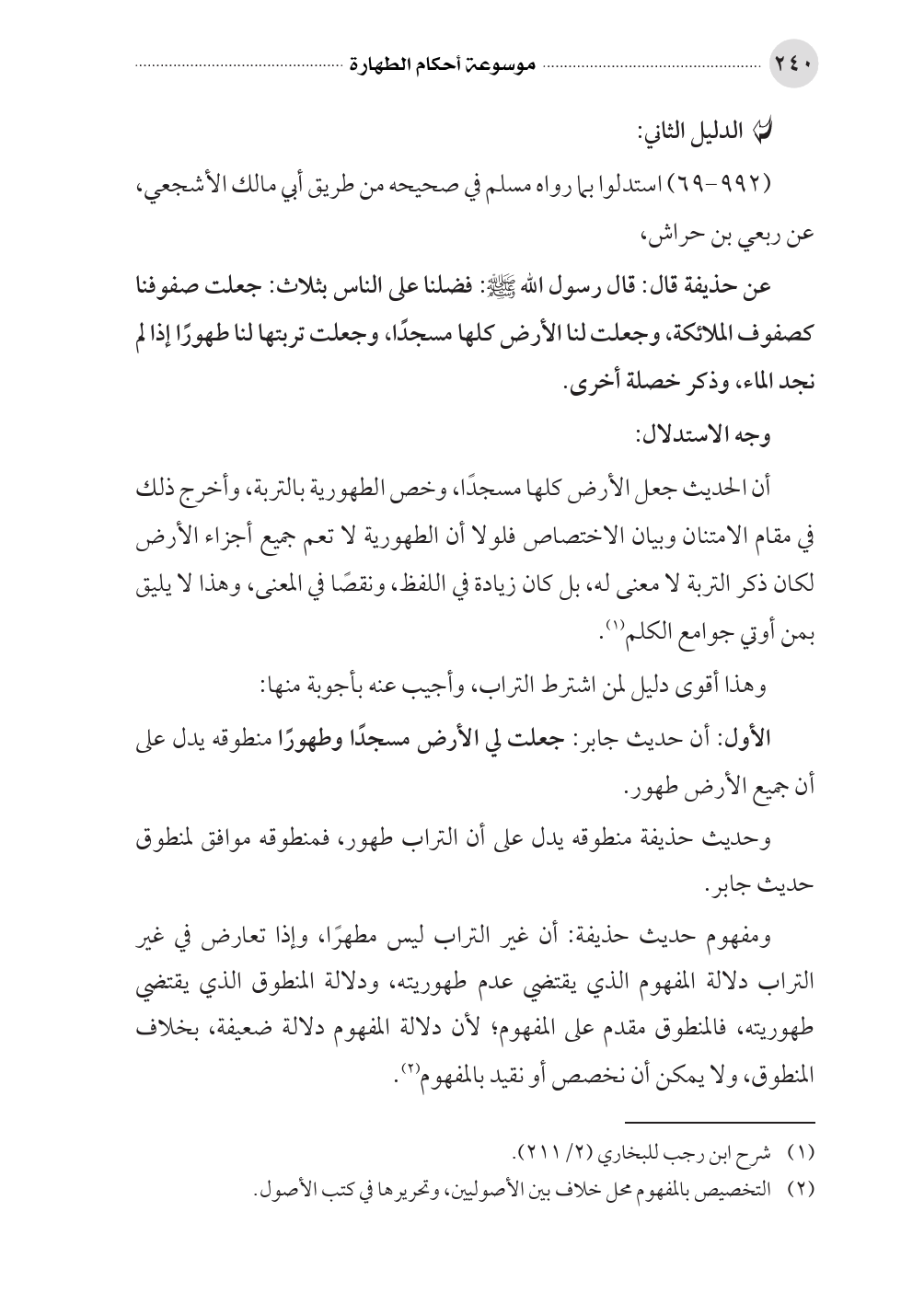 (٩٩٢ - ٦٩) استدلوا بما رواه مسلم في صحيحه من طريق أبي مالك الأشجعي، عن ربعي بن حراش،