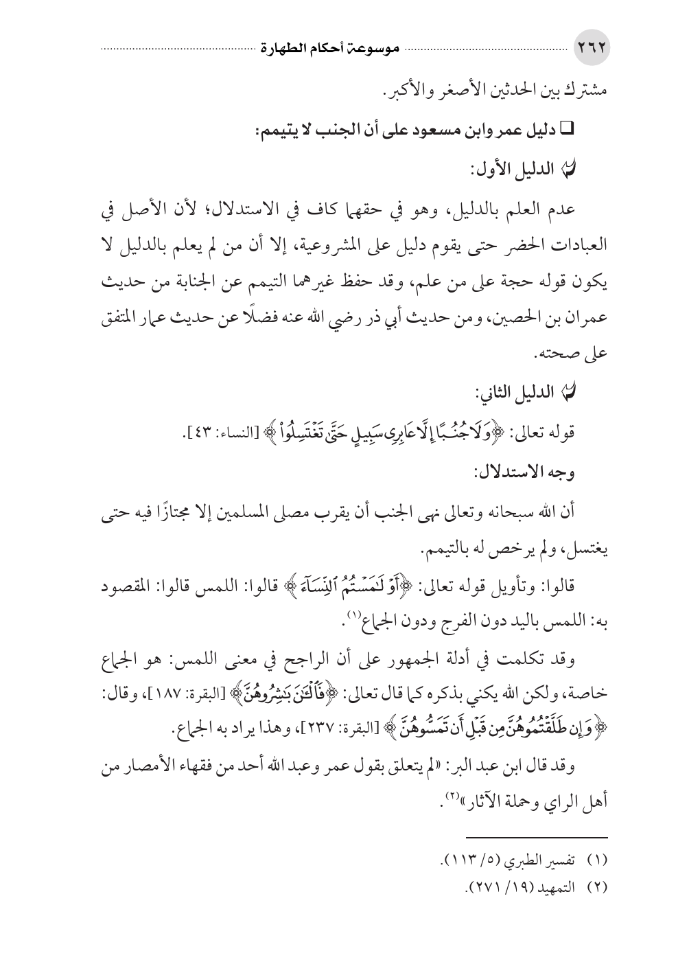 • دليل عمر وابن مسعود على أن الجنب لا يتيمم: