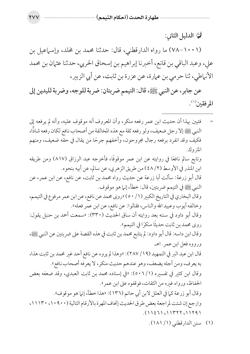 قال أبو زرعة: سألت أبا زرعة عن حديث رواه محمد بن ثابت، عن نافع، عن ابن عمر، عن النبي صلى الله عليه وسلم في التيمم ضربتين، قال: خطأ، إنما هو موقوف.