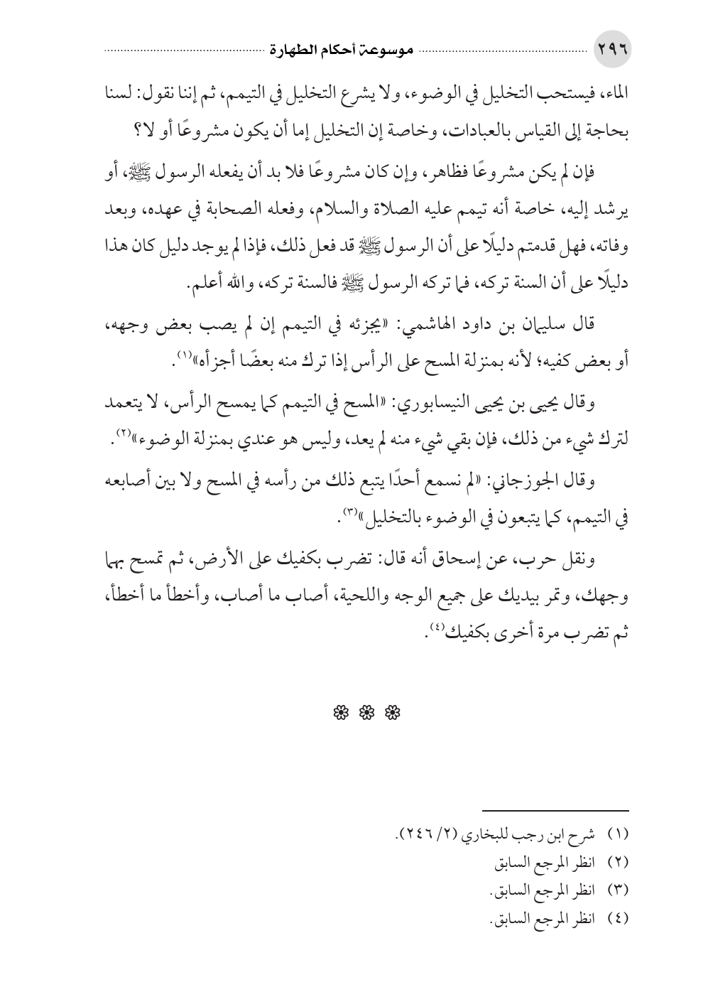 وقال الجوزجاني: «لم نسمع أحدًا يتبع ذلك من رأسه في المسح ولا بين أصابعه في التيمم، كما يتبعون في الوضوء بالتخليل» (¬٣).