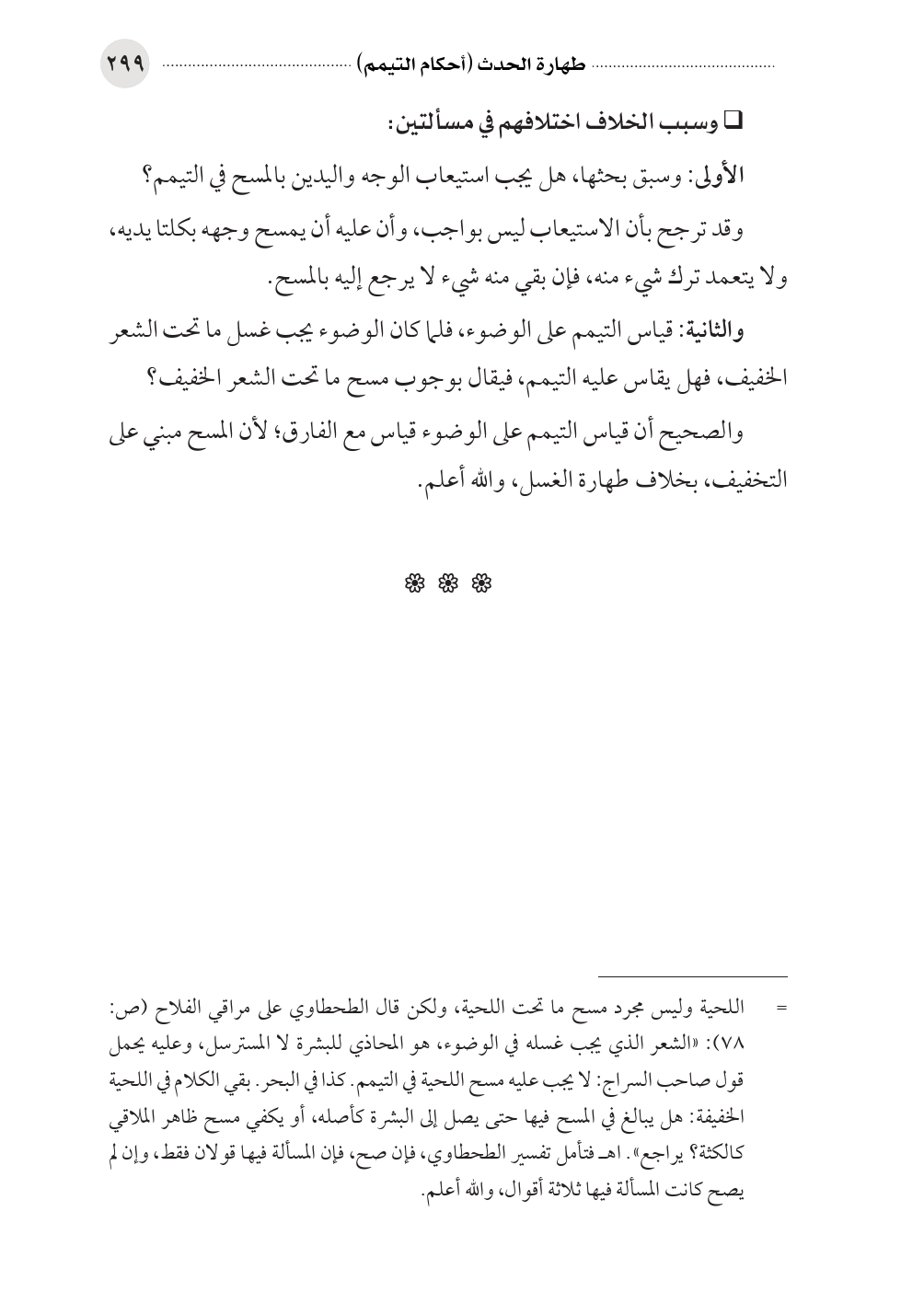 والثانية: قياس التيمم على الوضوء، فلما كان الوضوء يجب غسل ما تحت الشعر الخفيف، فهل يقاس عليه التيمم، فيقال بوجوب مسح ما تحت الشعر الخفيف؟