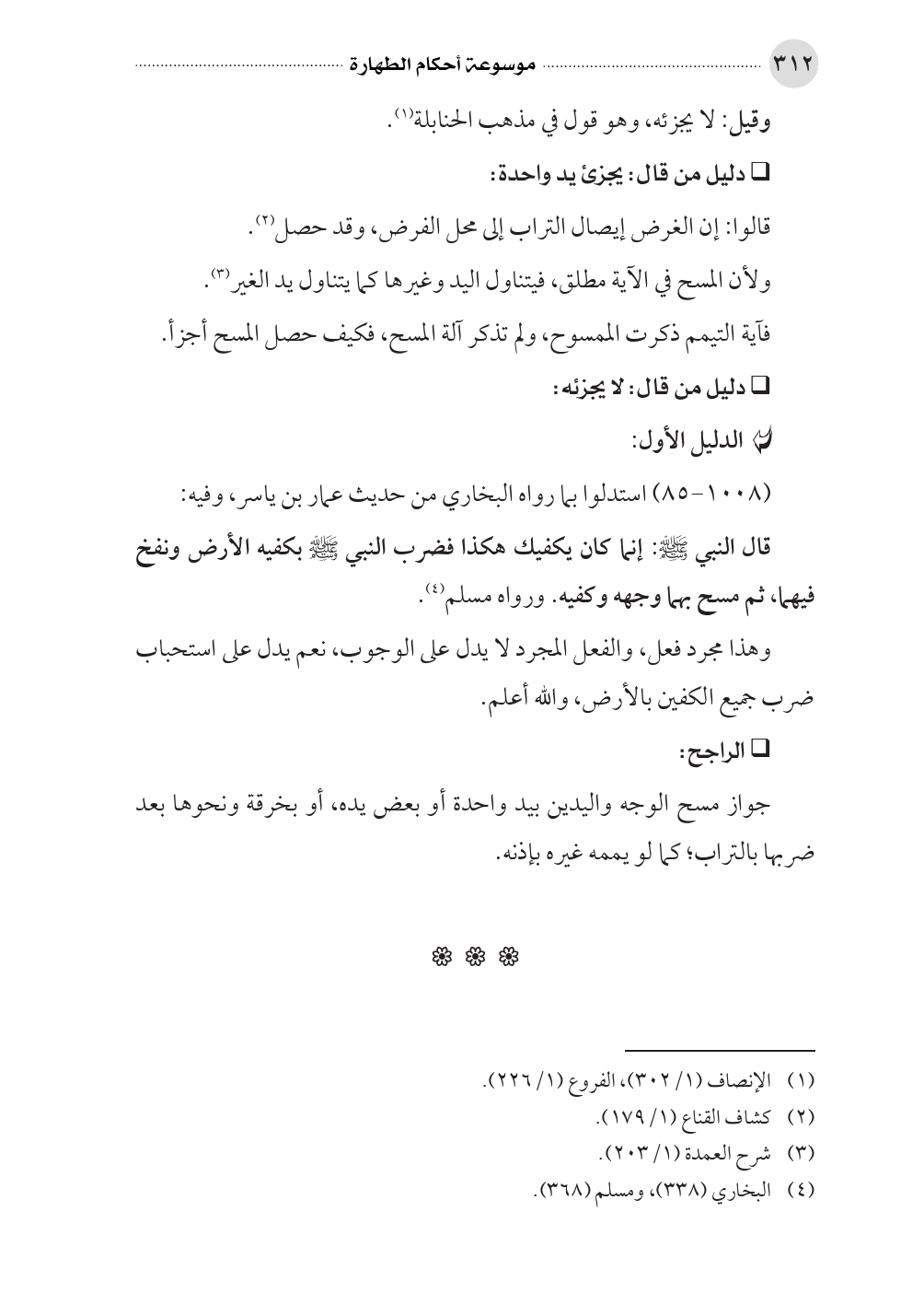 (١٠٠٨ - ٨٥) استدلوا بما رواه البخاري من حديث عمار بن ياسر، وفيه: