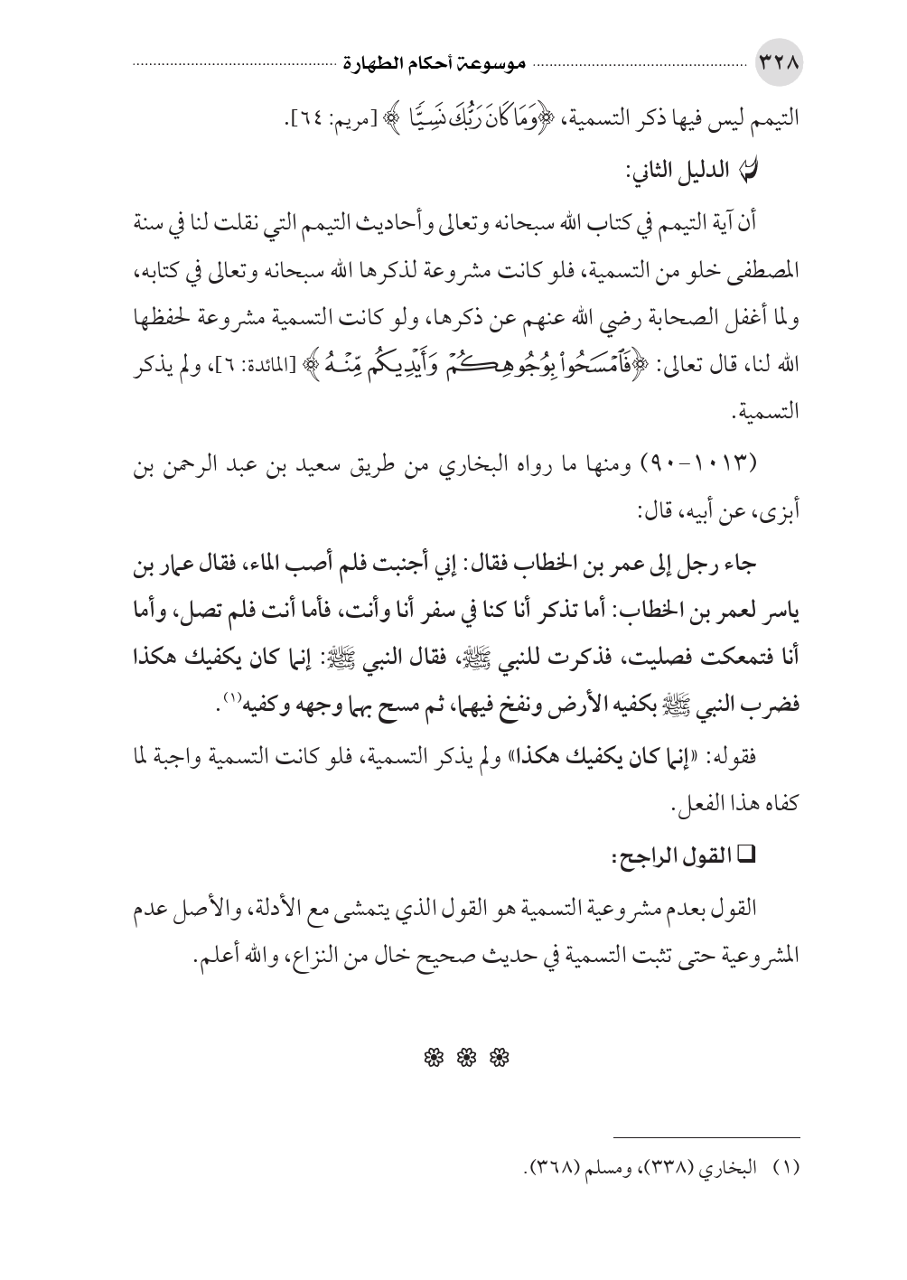 التيمم ليس فيها ذكر التسمية، (وَمَا كَانَ رَبُّكَ نَسِيّاً) [مريم: ٦٤].