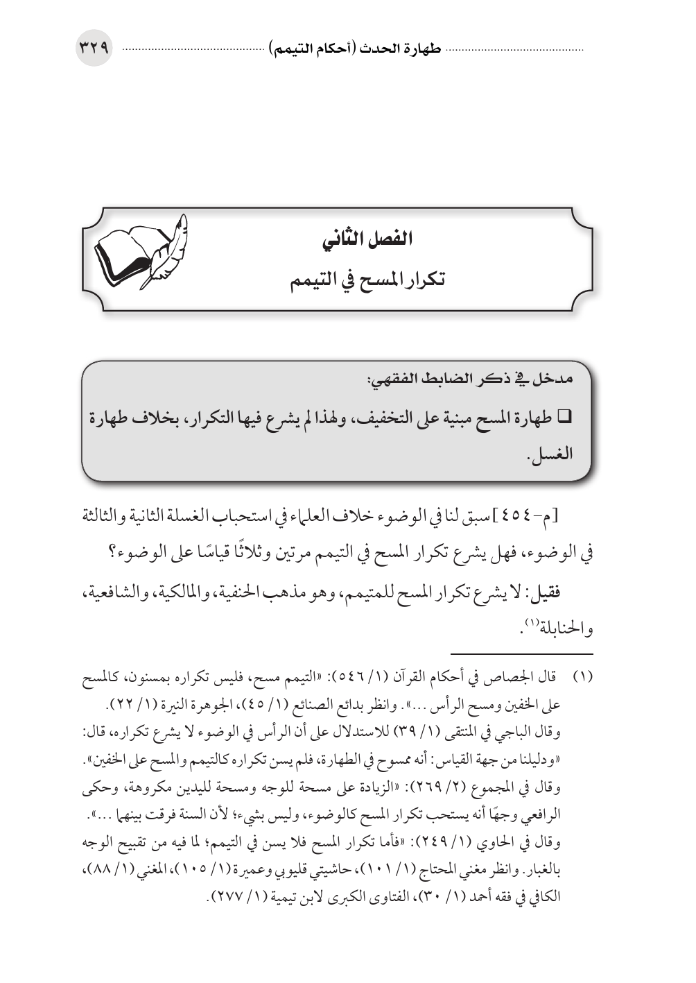 (¬١) قال الجصاص في أحكام القرآن (١/ ٥٤٦): «التيمم مسح، فليس تكراره بمسنون، كالمسح على الخفين ومسح الرأس ... ». وانظر بدائع الصنائع (١/ ٤٥)، الجوهرة النيرة (١/ ٢٢).