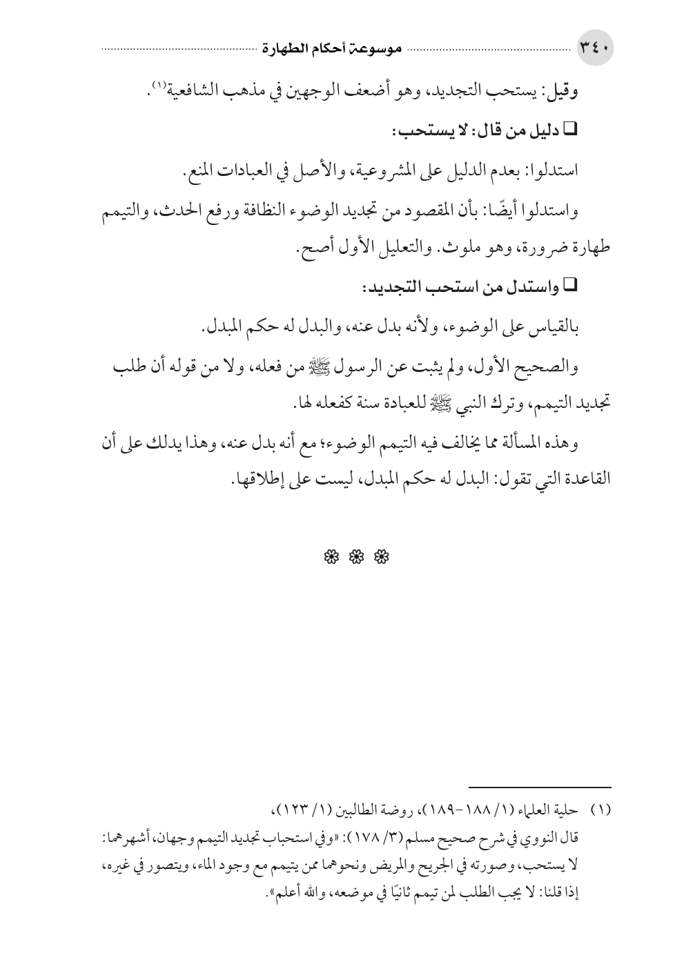 (¬١) حلية العلماء (١/ ١٨٨ - ١٨٩)، روضة الطالبين (١/ ١٢٣)،