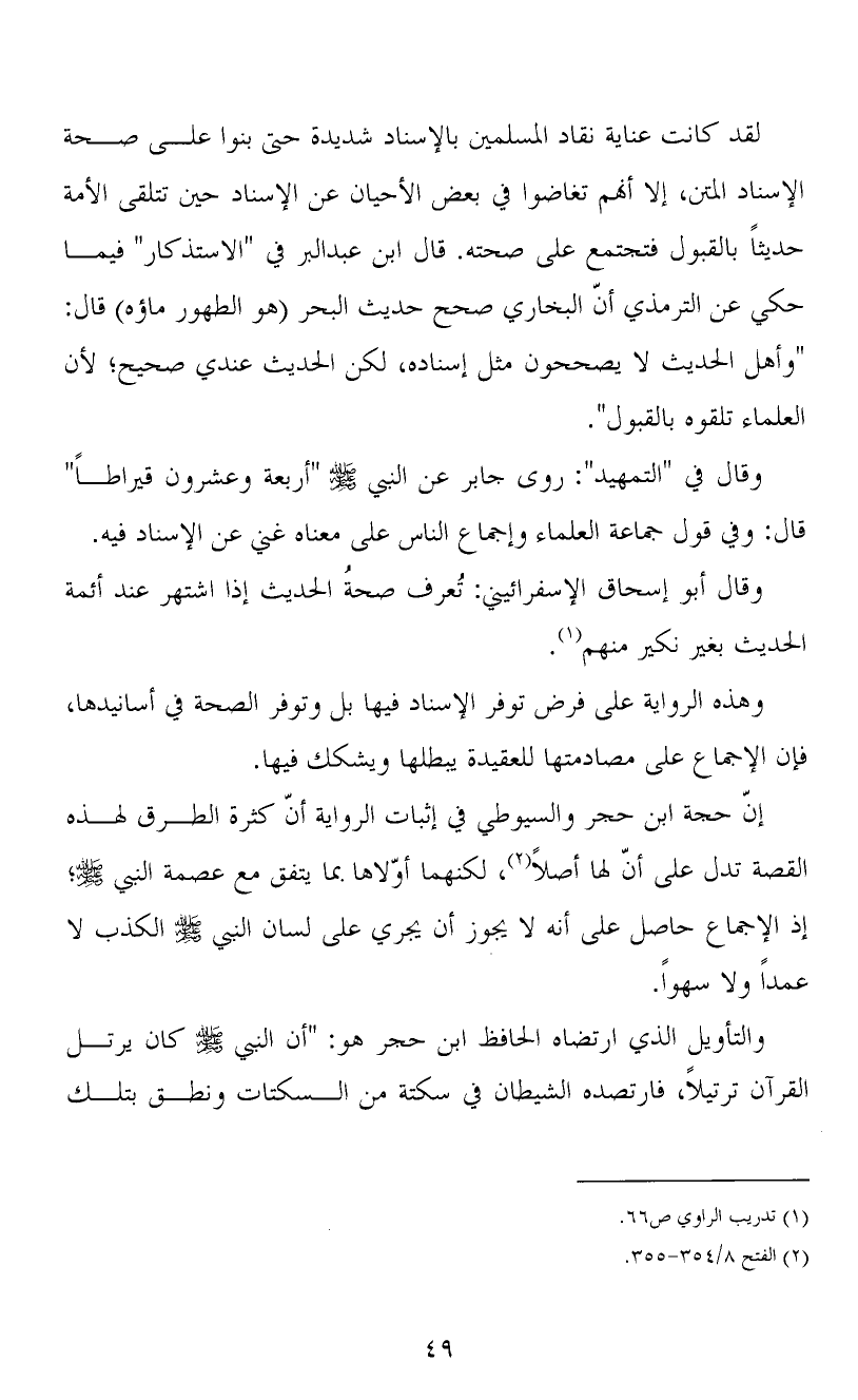 إنّ حجة ابن حجر والسيوطي في إثبات الرواية أنّ كثرة الطرق لهذه القصة تدل على أنّ لها أصلاً (2) ، لكنهما أوّلاها بما يتفق مع عصمة النبي صلى الله عليه وسلم؛ إذ الإجماع حاصل على أنه لا يجوز أن يجري على لسان النبي صلى الله عليه وسلم الكذب لا عمداً ولا سهواً.
