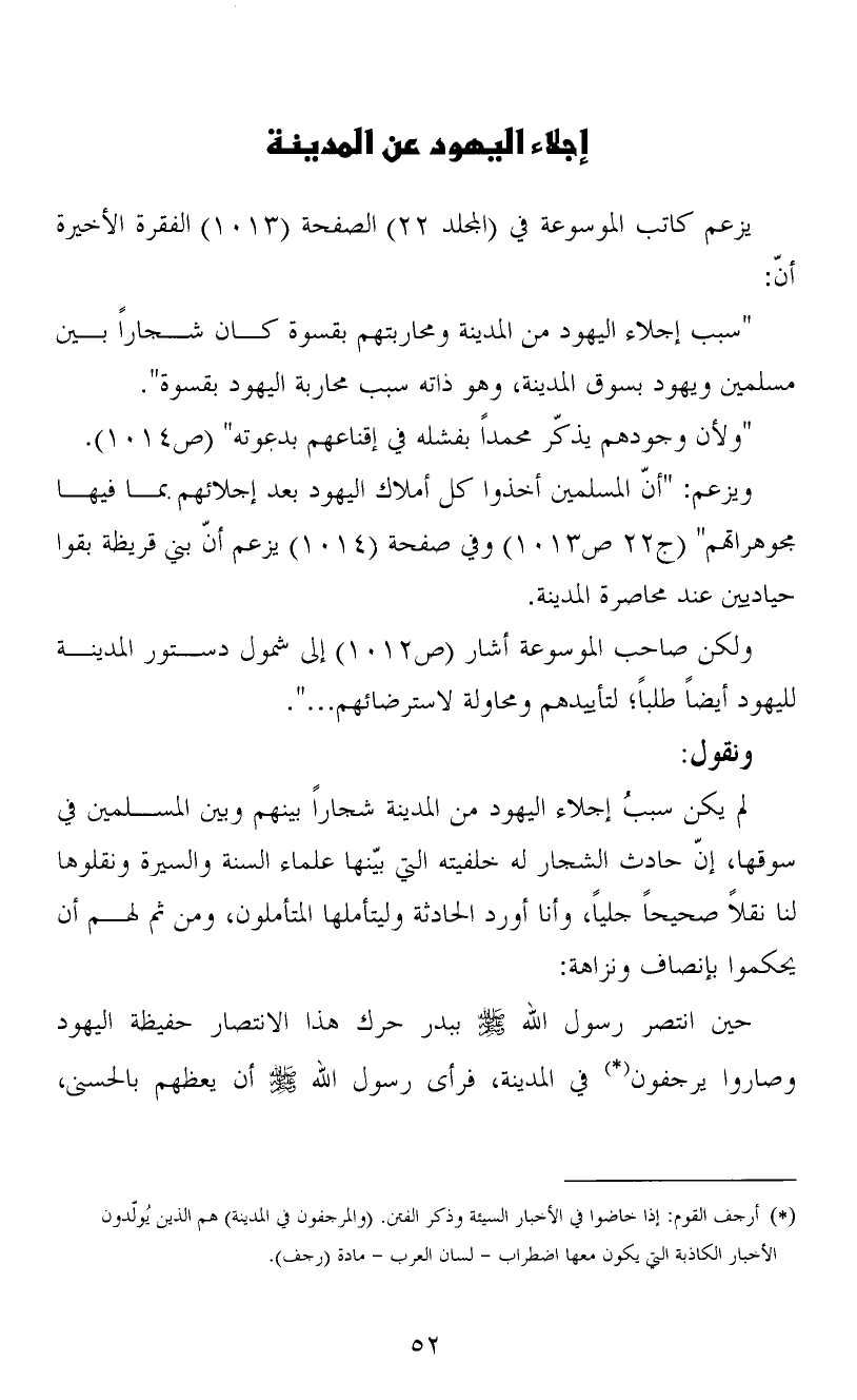 "سبب إجلاء اليهود من المدينة ومحاربتهم بقسوة كان شجاراً بين مسلمين ويهود بسوق المدينة، وهو ذاته سبب محاربة اليهود بقسوة".