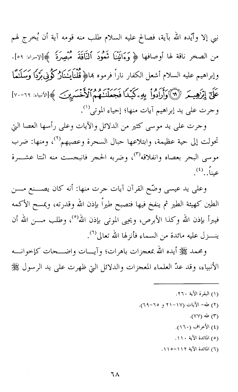 نبي إلا وأيّده الله بآية، فصالح عليه السلام طلب منه قومه آية أن يُخرج لهم من الصخر ناقة لها أوصافها {وَآتَيْنَا ثَمُودَ النَّاقَةَ مُبْصِرَةً} [الإسراء:59] . وإبراهيم عليه السلام أشعل الكفار ناراً فرموه بها {قُلْنَا يَا نَارُ كُونِي بَرْدًا وَسَلَامًا عَلَى إِبْرَاهِيمَ، وَأَرَادُوا بِهِ كَيْدًا فَجَعَلْنَاهُمُ الْأَخْسَرِينَ} [الأنبياء:69-70] وجرت على يد إبراهيم آيات منها؛ إحياء الموتى (1) .