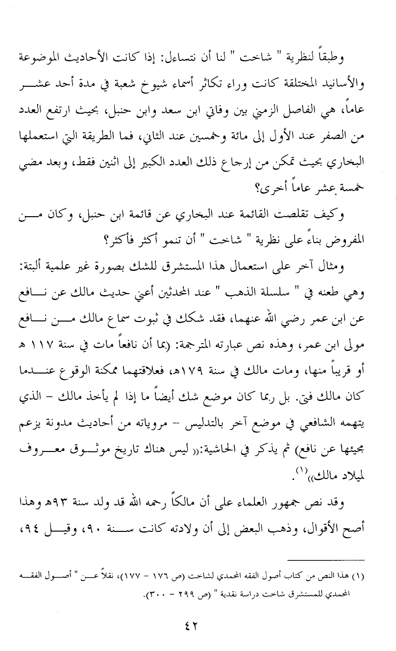 (1) هذا النص من كتاب أصول الفقه المحمدي لشاخت (ص 176 - 177) ، نقلاً عن " أصول الفقه المحمدي للمستشرق شاخت دراسة نقدية " (ص 299 - 300) .
