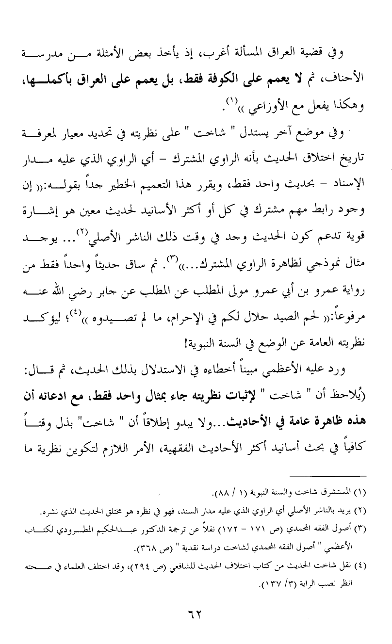 (3) أصول الفقه المحمدي (ص 171 - 172) نقلاً عن ترجمة الدكتور عبد الحكيم المطرودي لكتاب الأعظمي " أصول الفقه المحمدي لشاخت دراسة نقدية " (ص 368) .