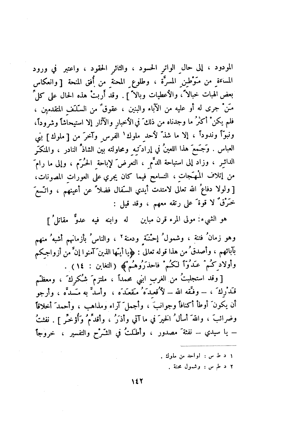[وقد استجلبت من الغرب ابني محمدا، ملتزم شكرك، ومعظم قدرك، - وفقه الله - لأقعده مقعده، وأسد به مسده، وأرجو أن يكون أوطأ أكنافا وجوانب، وأجمل آراء ومذاهب، وأحمد أخلاقا وضرائب، والله أسأل الخير في ما آتي وأذر، وأقدم وأؤخر] . نفثت - يا سيدي - نفثة مصدور، وأطلت في الشرح والتفسير، خروجا