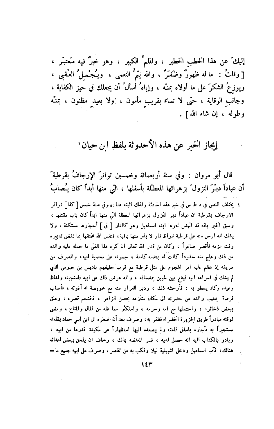 إيجاز الخبر عن هذه الأحدوثة بلفظ ابن حيان 1