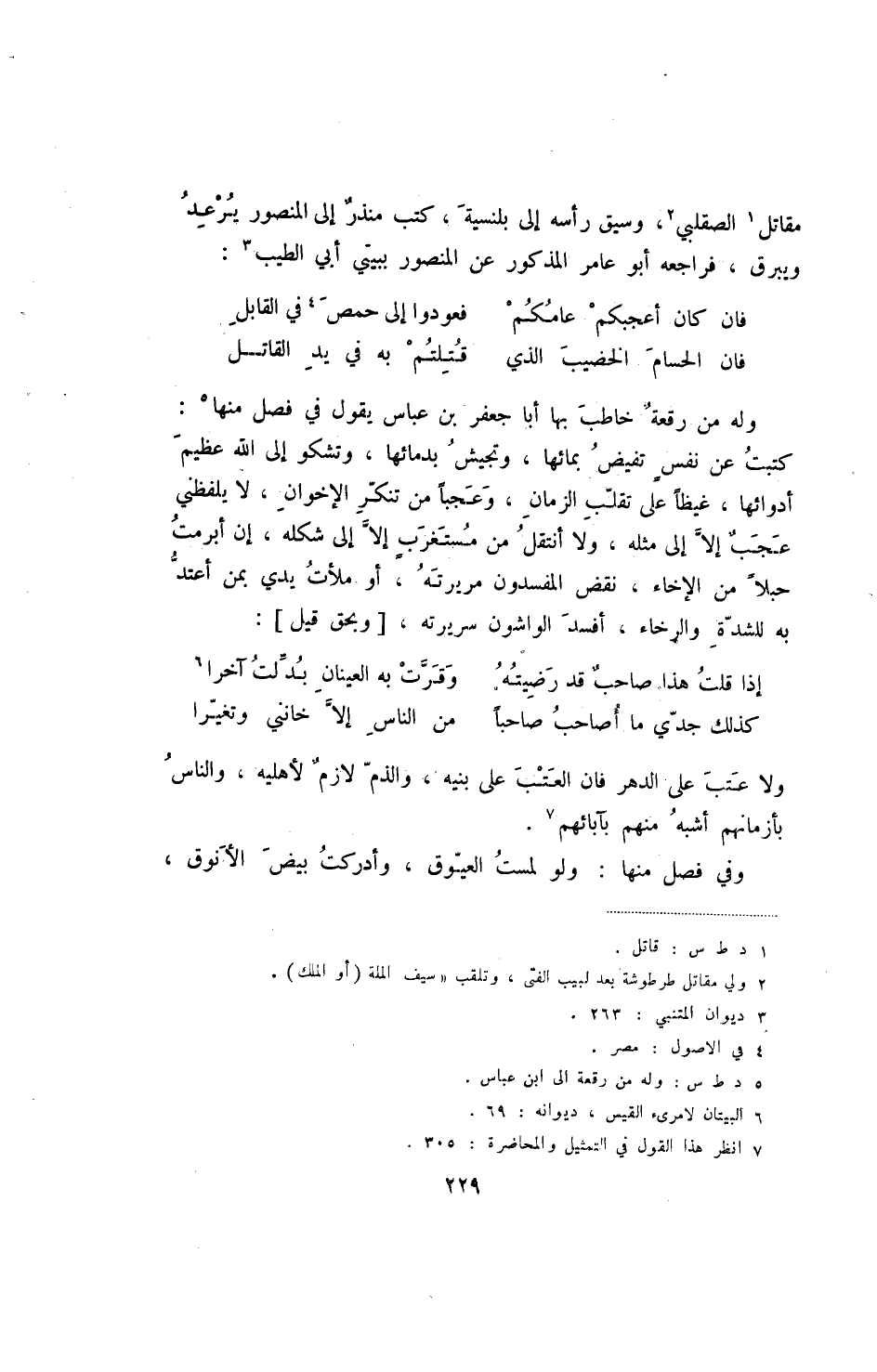 مقاتل الصقلبي، وسيق رأسه إلى بلنسية، كتب منذر إلى المنصور يرعد ويبرق، فراجعه أبو عامر المذكور عن المنصور ببيتي أبي الطيب: