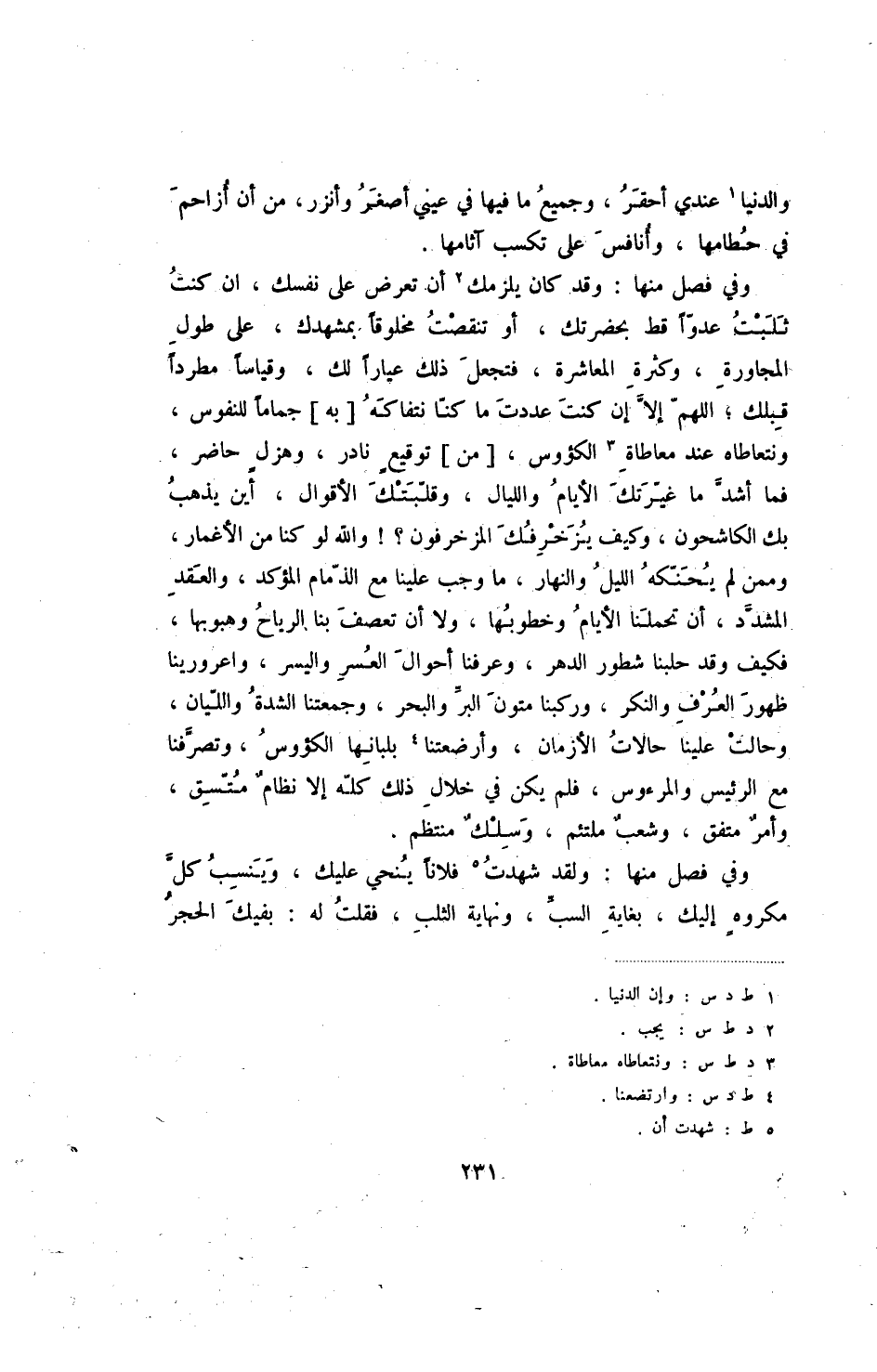 والدنيا عندي أحقر، وجميع ما فيها في عيني أصغر وأنزر، من أن أزاحم في حطامها، وأنافس على تكسب آثامها.