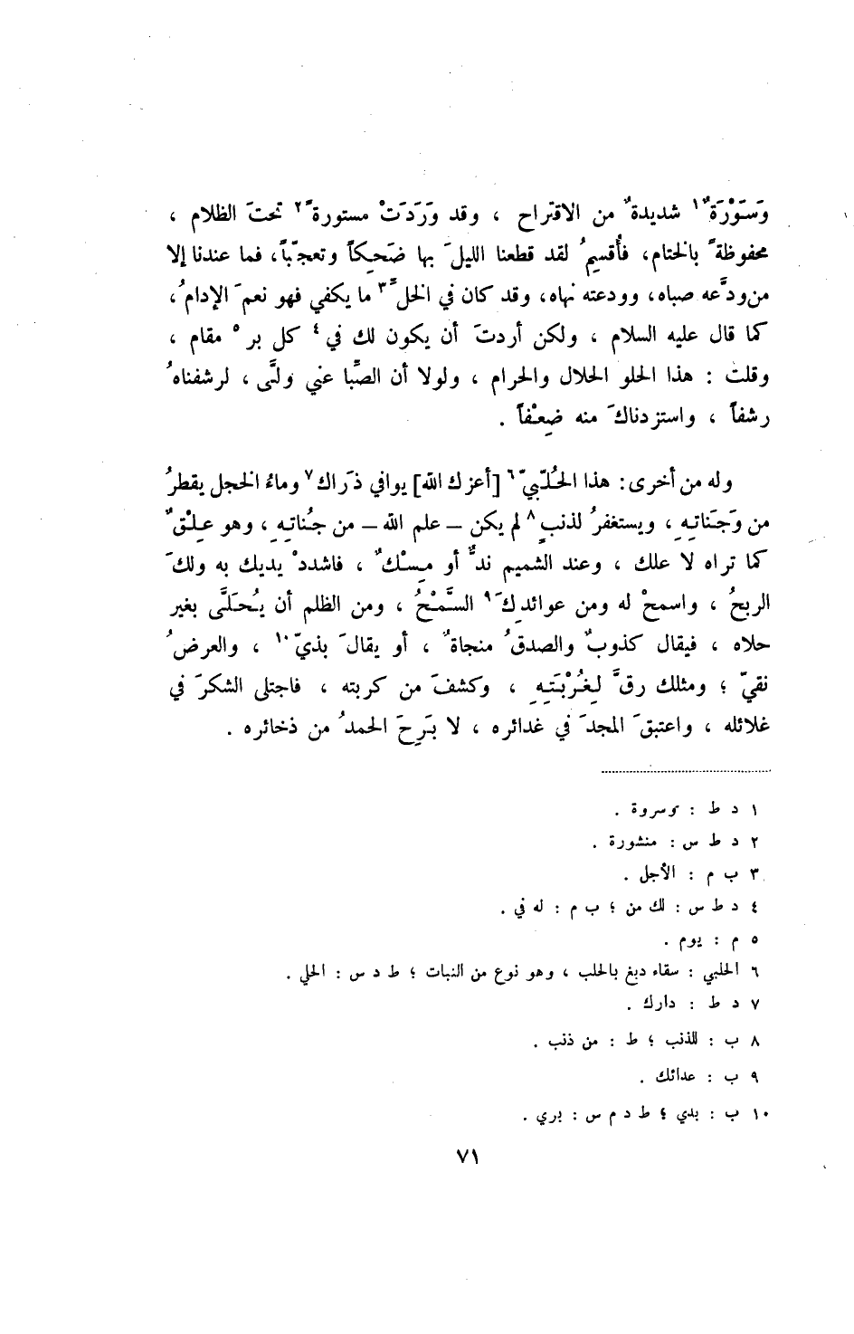 وسورة شديدة من الاقتراح، وقد وردت مستورة تحت الظلام، محفوظة بالختام، فأقسم لقد قطعنا الليل بها ضحكا وتعجبا، فما عندنا إلا من ودعه صباه، وودعته نهاه، وقد كان في الخل ما يكفي فهو نعم الإدام، كما قال عليه السلام، ولكن أردت أن يكون لك في كل بر مقام، وقلت: هذا الحلو الحلال والحرام، ولولا أن الصبا عني ولى، لرشفناه رشفا، واستزدناك منه ضعفا.