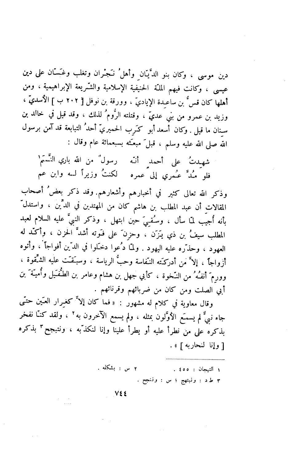 وذكر الله تعالى كثير في أخبارهم وأشعارهم. وقد ذكر بعض أصحاب المقالات أن عبد المطلب بن هاشم كان من المهتدين في الدين، واستدل بأنه أجيب لما سأل، وسقي حين ابتهل، وذكر النبي عليه السلام لعبد المطلب سيف بن ذي يزن، وحزن على فوقه أشد الحزن، وأكد له العهود، وحذره عليه اليهود. ولما دعوا دخلوا في الدين أفواجا، وأتوه أزواجا، إلا من أدركته النفاسة وحب الرياسة، وسبقت عليه الشقوة، وورم أنفه من النخوة، كأبي جهل بن هشام وعامر بن الطفيل وأمية بن أبي الصلت ومن كان من ضربائهم وقرنائهم.