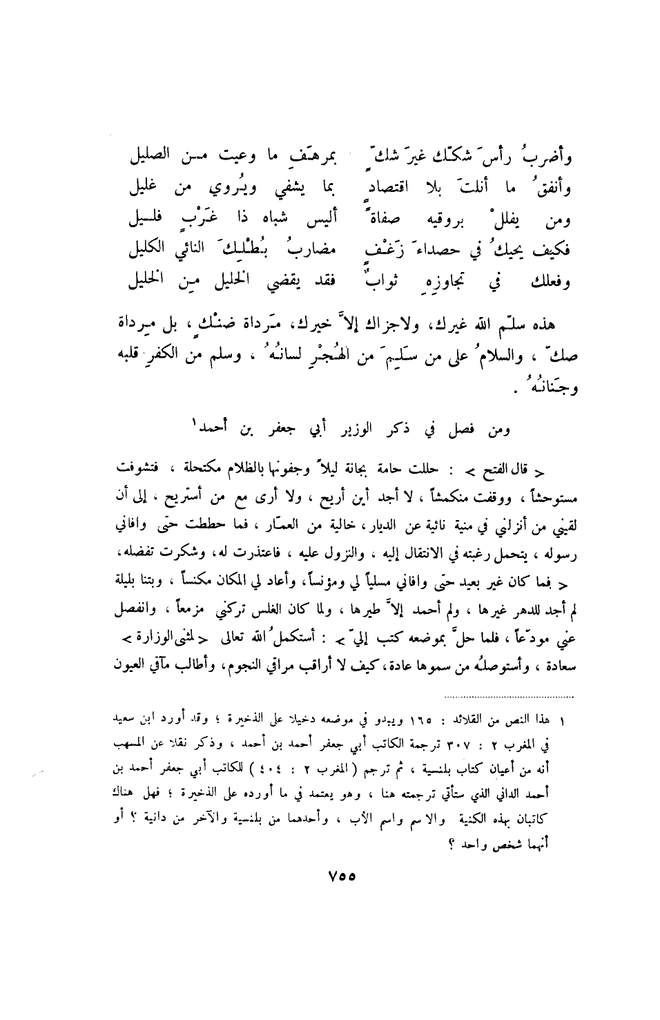 ومن فصل في ذكر الوزير أبي جعفر بن أحمد