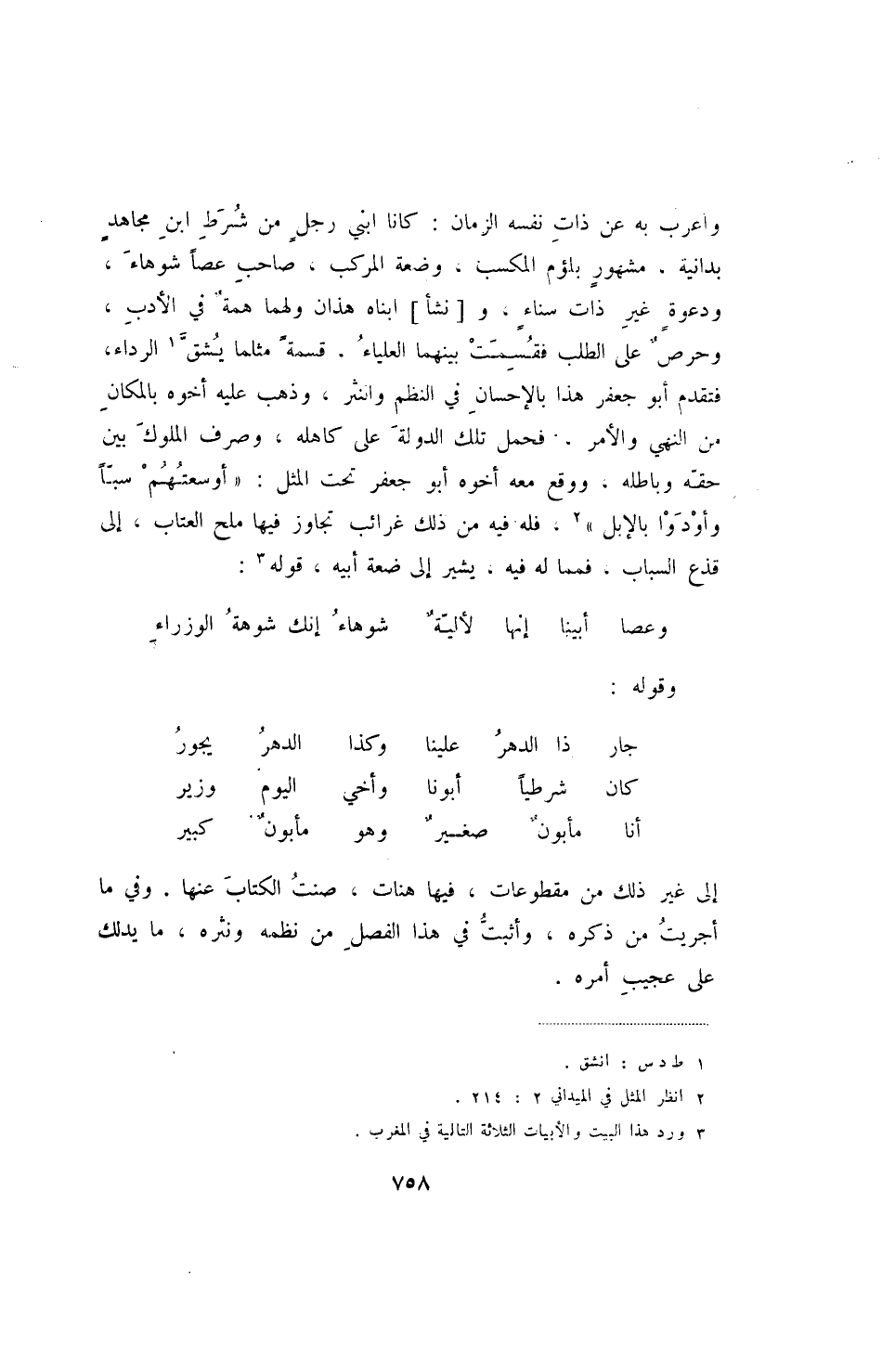 إلى غير ذلك من مقطوعات، فيها هنات، صنت الكتاب عنها. وفي ما أجريت من ذكره، وأثبت في هذا الفصل من نظمه ونثره، ما يدلك على عجيب أمره.