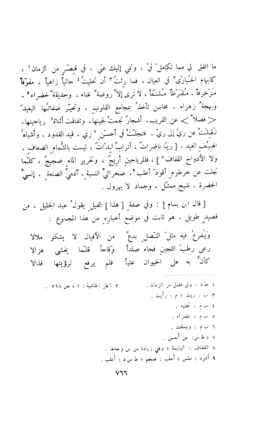 [قال ابن بسام] : وفي صفة [هذا] الفيل يقول عبد الجليل، من قصيد طويل، هو ثابت في موضع أخباره من هذا المجموع: