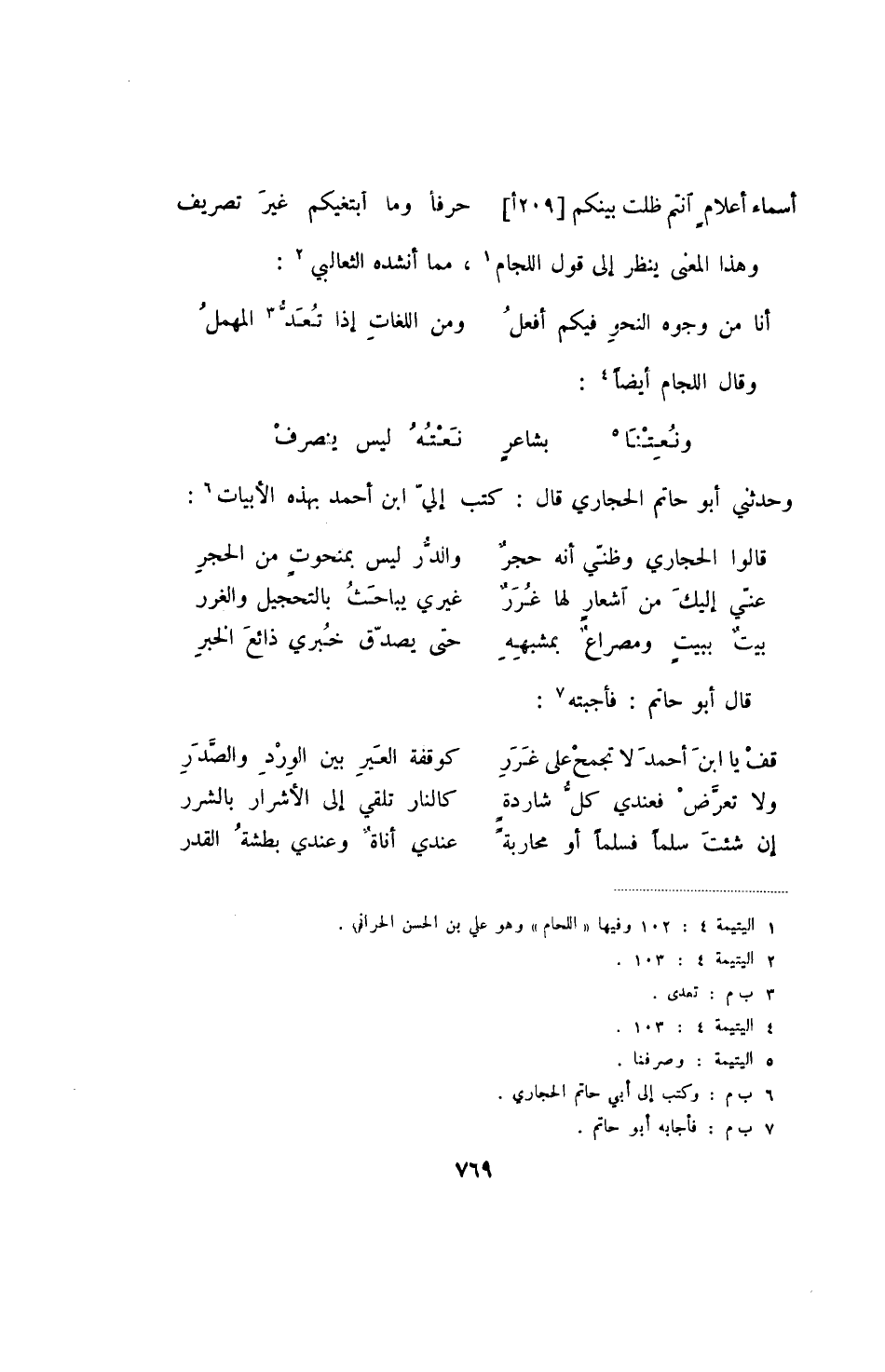 أسماء أعلام أنتم ظلت بينكم [209أ] حرفا وما أبتغيكم غير تصريف