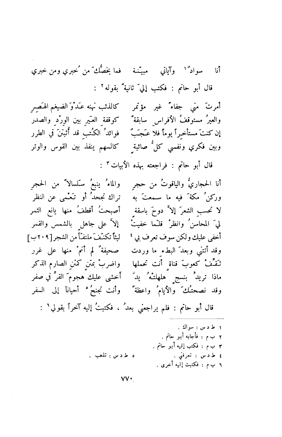 قال أبو حاتم: فراجعته بهذه الأبيات: