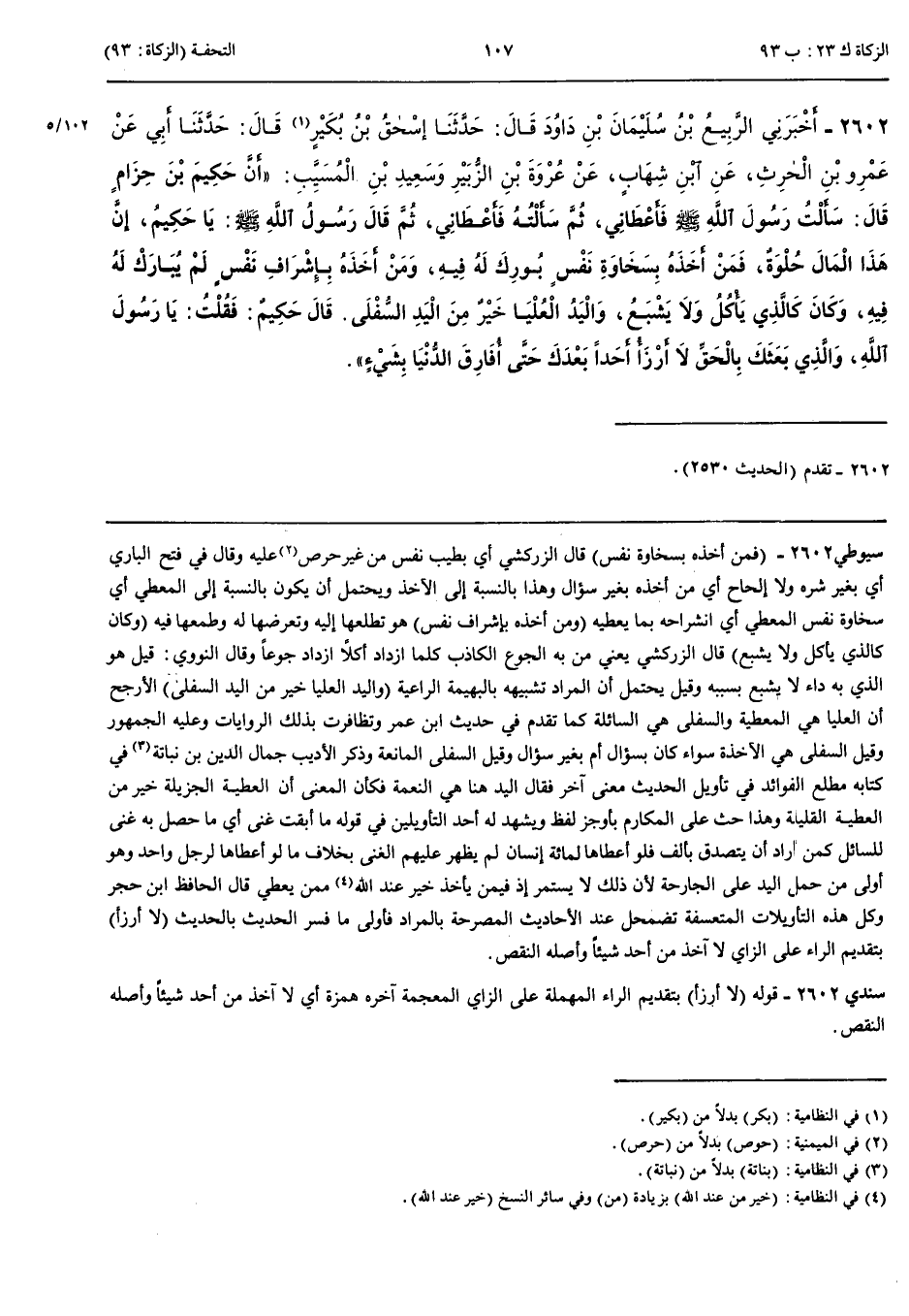 2602 - أَخْبَرَنِي الرَّبِيعُ بْنُ سُلَيْمَانَ بْنِ دَاوُدَ قَالَ حَدَّثَنَا إِسْحَقُ بْنُ بَكْرٍ قَالَ حَدَّثَنِي أَبِي عَنْ عَمْرِو بْنِ الْحَارِثِ عَنْ ابْنِ شِهَابٍ عَنْ عُرْوَةَ بْنِ الزُّبَيْرِ وَسَعِيدِ بْنِ الْمُسَيَّبِ أَنَّ حَكِيمَ بْنَ حِزَامٍ قَالَ سَأَلْتُ رَسُولَ اللَّهِ صَلَّى اللَّهُ عَلَيْهِ وَسَلَّمَ فَأَعْطَانِي ثُمَّ سَأَلْتُهُ فَأَعْطَانِي ثُمَّ قَالَ رَسُولُ اللَّهِ صَلَّى اللَّهُ عَلَيْهِ وَسَلَّمَ يَا حَكِيمُ إِنَّ هَذَا الْمَالَ حُلْوَةٌ فَمَنْ أَخَذَهُ بِسَخَاوَةِ نَفْسٍ بُورِكَ لَهُ فِيهِ وَمَنْ أَخَذَهُ بِإِشْرَافِ نَفْسٍ لَمْ يُبَارَكْ لَهُ فِيهِ وَكَانَ كَالَّذِي يَأْكُلُ وَلَا يَشْبَعُ وَالْيَدُ الْعُلْيَا خَيْرٌ مِنْ الْيَدِ السُّفْلَى قَالَ حَكِيمٌ فَقُلْتُ يَا رَسُولَ اللَّهِ وَالَّذِي بَعَثَكَ بِالْحَقِّ لَا أَرْزَأُ أَحَدًا بَعْدَكَ حَتَّى أُفَارِقَ الدُّنْيَا بِشَيْءٍ
