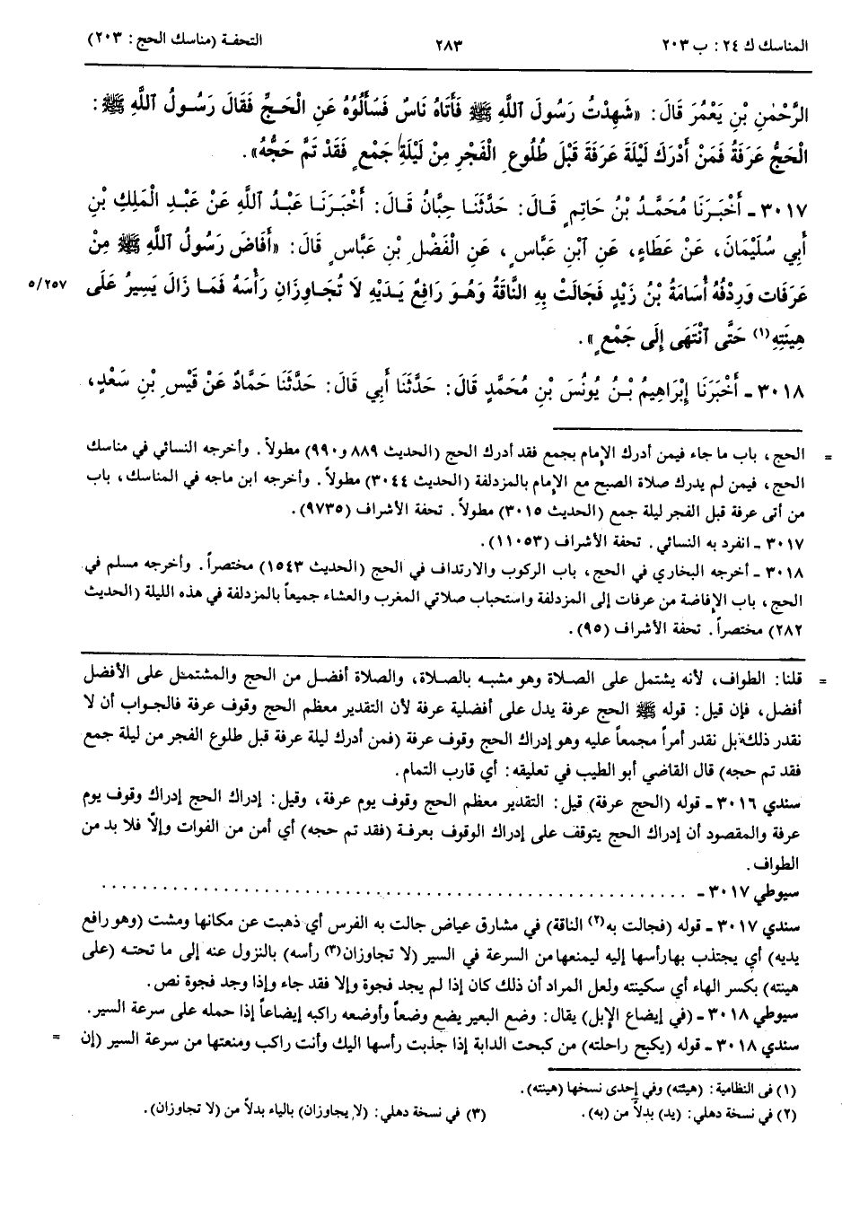 3017 - أَخْبَرَنَا مُحَمَّدُ بْنُ حَاتِمٍ قَالَ حَدَّثَنَا حِبَّانُ قَالَ أَنْبَأَنَا عَبْدُ اللَّهِ عَنْ عَبْدِ الْمَلِكِ بْنِ أَبِي سُلَيْمَانَ عَنْ عَطَاءٍ عَنْ ابْنِ عَبَّاسٍ عَنْ الْفَضْلِ بْنِ عَبَّاسٍ قَالَ أَفَاضَ رَسُولُ اللَّهِ صَلَّى اللَّهُ عَلَيْهِ وَسَلَّمَ مِنْ عَرَفَاتٍ وَرِدْفُهُ أُسَامَةُ بْنُ زَيْدٍ فَجَالَتْ بِهِ النَّاقَةُ وَهُوَ رَافِعٌ يَدَيْهِ لَا تُجَاوِزَانِ رَأْسَهُ فَمَا زَالَ يَسِيرُ عَلَى هِينَتِهِ حَتَّى انْتَهَى إِلَى جَمْعٍ