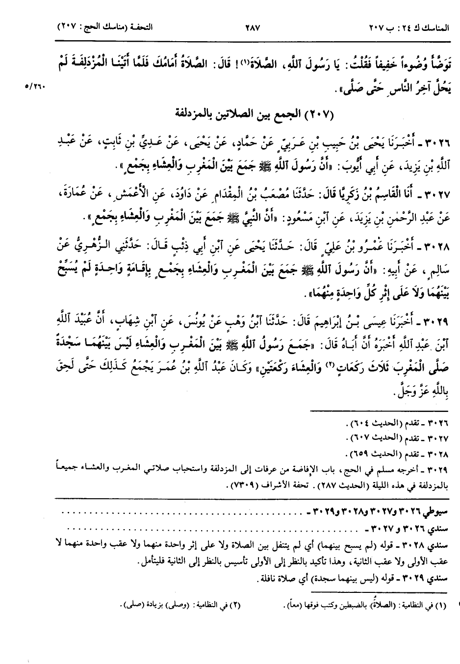 3027 - أَخْبَرَنَا الْقَاسِمُ بْنُ زَكَرِيَّا قَالَ حَدَّثَنَا مُصْعَبُ بْنُ الْمِقْدَامِ عَنْ دَاوُدَ عَنْ الْأَعْمَشِ عَنْ عُمَارَةَ عَنْ عَبْدِ الرَّحْمَنِ بْنِ يَزِيدَ عَنْ ابْنِ مَسْعُودٍ أَنَّ النَّبِيَّ صَلَّى اللَّهُ عَلَيْهِ وَسَلَّمَ جَمَعَ بَيْنَ الْمَغْرِبِ وَالْعِشَاءِ بِجَمْعٍ