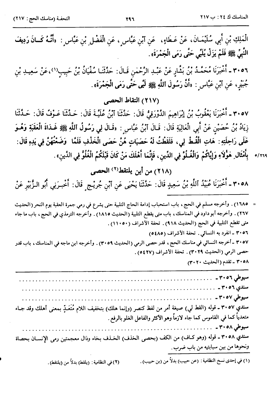 بَاب الْتِقَاطِ الْحَصَى 3057 - أَخْبَرَنَا يَعْقُوبُ بْنُ إِبْرَاهِيمَ الدَّوْرَقِيُّ قَالَ حَدَّثَنَا ابْنُ عُلَيَّةَ قَالَ حَدَّثَنَا عَوْفٌ قَالَ حَدَّثَنَا زِيَادُ بْنُ حُصَيْنٍ عَنْ أَبِي الْعَالِيَةِ قَالَ قَالَ ابْنُ عَبَّاسٍ قَالَ لِي رَسُولُ اللَّهِ صَلَّى اللَّهُ عَلَيْهِ وَسَلَّمَ غَدَاةَ الْعَقَبَةِ وَهُوَ عَلَى رَاحِلَتِهِ هَاتِ الْقُطْ لِي فَلَقَطْتُ لَهُ حَصَيَاتٍ هُنَّ حَصَى الْخَذْفِ فَلَمَّا وَضَعْتُهُنَّ فِي يَدِهِ قَالَ بِأَمْثَالِ هَؤُلَاءِ وَإِيَّاكُمْ وَالْغُلُوَّ فِي الدِّينِ فَإِنَّمَا أَهْلَكَ مَنْ كَانَ قَبْلَكُمْ الْغُلُوُّ فِي الدِّينِ