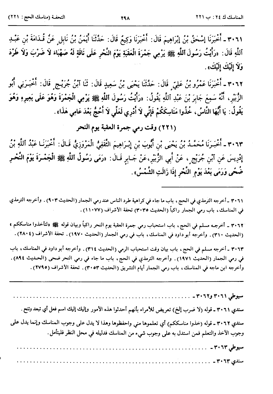 3061 - أَخْبَرَنَا إِسْحَقُ بْنُ إِبْرَاهِيمَ قَالَ أَنْبَأَنَا وَكِيعٌ قَالَ حَدَّثَنَا أَيْمَنُ بْنُ نَابِلٍ عَنْ قُدَامَةَ بْنِ عَبْدِ اللَّهِ قَالَ رَأَيْتُ رَسُولَ اللَّهِ صَلَّى اللَّهُ عَلَيْهِ وَسَلَّمَ يَرْمِي جَمْرَةَ الْعَقَبَةِ يَوْمَ النَّحْرِ عَلَى نَاقَةٍ لَهُ صَهْبَاءَ لَا ضَرْبَ وَلَا طَرْدَ وَلَا إِلَيْكَ إِلَيْكَ