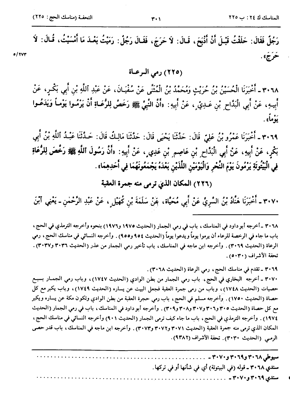 بَاب رَمْيِ الرُّعَاةِ 3068 - أَخْبَرَنَا الْحُسَيْنُ بْنُ حُرَيْثٍ وَمُحَمَّدُ بْنُ الْمُثَنَّى عَنْ سُفْيَانَ عَنْ عَبْدِ اللَّهِ بْنِ أَبِي بَكْرٍ عَنْ أَبِيهِ عَنْ أَبِي الْبَدَّاحِ بْنِ عَدِيٍّ عَنْ أَبِيهِ أَنَّ النَّبِيَّ صَلَّى اللَّهُ عَلَيْهِ وَسَلَّمَ رَخَّصَ لِلرُّعَاةِ أَنْ يَرْمُوا يَوْمًا وَيَدَعُوا يَوْمًا