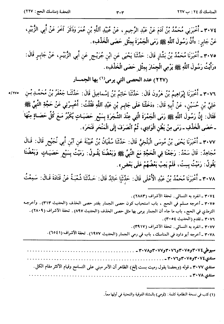 3077 - أَخْبَرَنِي يَحْيَى بْنُ مُوسَى الْبَلْخِيُّ قَالَ حَدَّثَنَا سُفْيَانُ بْنُ عُيَيْنَةَ عَنْ ابْنِ أَبِي نَجِيحٍ قَالَ قَالَ مُجَاهِدٌ قَالَ سَعْدٌ رَجَعْنَا فِي الْحَجَّةِ مَعَ النَّبِيِّ صَلَّى اللَّهُ عَلَيْهِ وَسَلَّمَ وَبَعْضُنَا يَقُولُ رَمَيْتُ بِسَبْعِ حَصَيَاتٍ وَبَعْضُنَا يَقُولُ رَمَيْتُ بِسِتٍّ فَلَمْ يَعِبْ بَعْضُهُمْ عَلَى بَعْضٍ