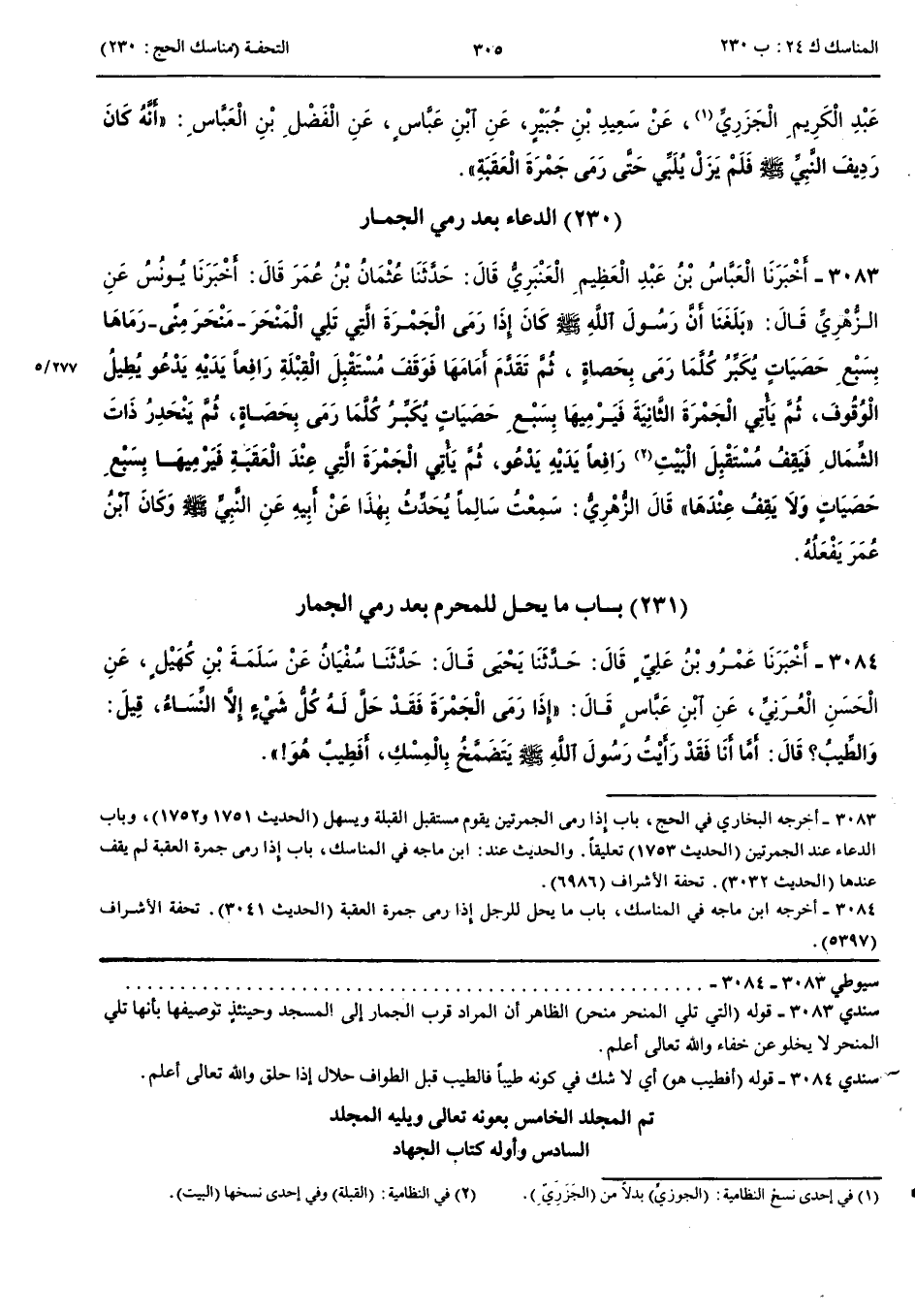 بَاب مَا يَحِلُّ لِلْمُحْرِمِ بَعْدَ رَمْيِ الْجِمَارِ 3084 - أَخْبَرَنَا عَمْرُو بْنُ عَلِيٍّ قَالَ حَدَّثَنَا يَحْيَى قَالَ حَدَّثَنَا سُفْيَانُ عَنْ سَلَمَةَ بْنِ كُهَيْلٍ عَنْ الْحَسَنِ الْعُرَنِيِّ عَنْ ابْنِ عَبَّاسٍ قَالَ إِذَا رَمَى الْجَمْرَةَ فَقَدْ حَلَّ لَهُ كُلُّ شَيْءٍ إِلَّا النِّسَاءَ قِيلَ وَالطِّيبُ قَالَ أَمَّا أَنَا فَقَدْ رَأَيْتُ رَسُولَ اللَّهِ صَلَّى اللَّهُ عَلَيْهِ وَسَلَّمَ يَتَضَمَّخُ بِالْمِسْكِ أَفَطِيبٌ هُوَ
