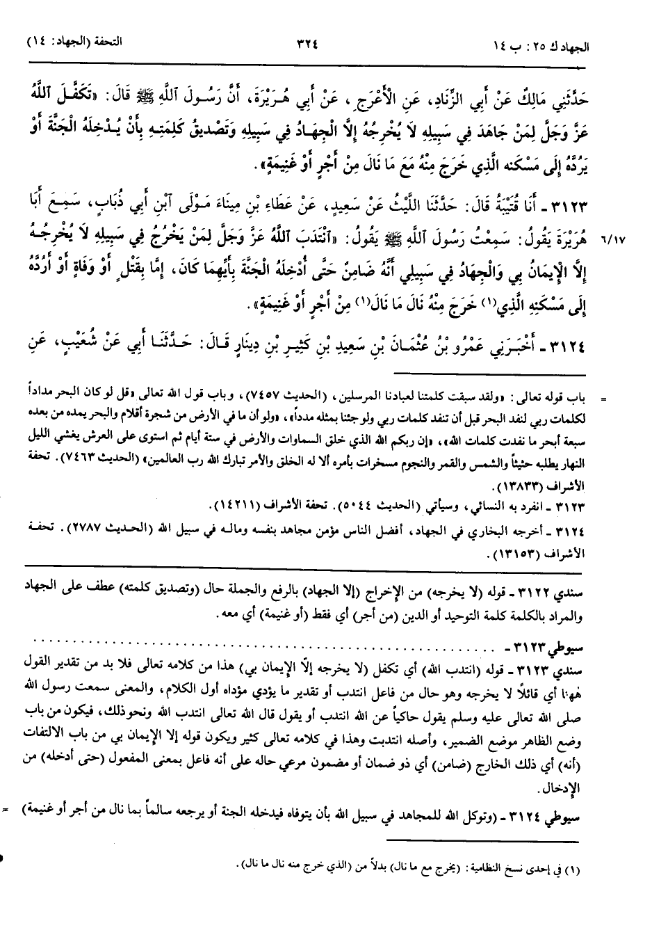 3123 - أَخْبَرَنَا قُتَيْبَةُ قَالَ حَدَّثَنَا اللَّيْثُ عَنْ سَعِيدٍ عَنْ عَطَاءِ بْنِ مِينَاءَ مَوْلَى ابْنِ أَبِي ذُبَابٍ سَمِعَ أَبَا هُرَيْرَةَ يَقُولُ سَمِعْتُ رَسُولَ اللَّهِ صَلَّى اللَّهُ عَلَيْهِ وَسَلَّمَ يَقُولُ انْتَدَبَ اللَّهُ عَزَّ وَجَلَّ لِمَنْ يَخْرُجُ فِي سَبِيلِهِ لَا يُخْرِجُهُ إِلَّا الْإِيمَانُ بِي وَالْجِهَادُ فِي سَبِيلِي أَنَّهُ ضَامِنٌ حَتَّى أُدْخِلَهُ الْجَنَّةَ بِأَيِّهِمَا كَانَ إِمَّا بِقَتْلٍ أَوْ وَفَاةٍ أَوْ أَرُدَّهُ إِلَى مَسْكَنِهِ الَّذِي خَرَجَ مِنْهُ نَالَ مَا نَالَ مِنْ أَجْرٍ أَوْ غَنِيمَةٍ