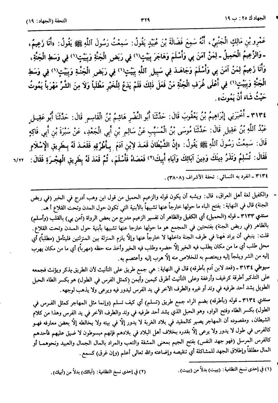 3134 - أَخْبَرَنِي إِبْرَاهِيمُ بْنُ يَعْقُوبَ قَالَ حَدَّثَنَا أَبُو النَّضْرِ هَاشِمُ بْنُ الْقَاسِمِ قَالَ حَدَّثَنَا أَبُو عَقِيلٍ عَبْدُ اللَّهِ بْنُ عَقِيلٍ قَالَ حَدَّثَنَا مُوسَى بْنُ الْمُسَيَّبِ عَنْ سَالِمِ بْنِ أَبِي الْجَعْدِ عَنْ سَبْرَةَ بْنِ أَبِي فَاكِهٍ قَالَ سَمِعْتُ رَسُولَ اللَّهِ صَلَّى اللَّهُ عَلَيْهِ وَسَلَّمَ يَقُولُ إِنَّ الشَّيْطَانَ قَعَدَ لِابْنِ آدَمَ بِأَطْرُقِهِ فَقَعَدَ لَهُ بِطَرِيقِ الْإِسْلَامِ فَقَالَ تُسْلِمُ وَتَذَرُ دِينَكَ وَدِينَ آبَائِكَ وَآبَاءِ أَبِيكَ فَعَصَاهُ فَأَسْلَمَ ثُمَّ قَعَدَ لَهُ بِطَرِيقِ الْهِجْرَةِ فَقَالَ تُهَاجِرُ وَتَدَعُ أَرْضَكَ وَسَمَاءَكَ وَإِنَّمَا مَثَلُ الْمُهَاجِرِ كَمَثَلِ الْفَرَسِ فِي الطِّوَلِ فَعَصَاهُ فَهَاجَرَ ثُمَّ قَعَدَ لَهُ بِطَرِيقِ الْجِهَادِ فَقَالَ تُجَاهِدُ فَهُوَ جَهْدُ النَّفْسِ وَالْمَالِ فَتُقَاتِلُ فَتُقْتَلُ فَتُنْكَحُ الْمَرْأَةُ وَيُقْسَمُ الْمَالُ فَعَصَاهُ فَجَاهَدَ فَقَالَ رَسُولُ اللَّهِ صَلَّى اللَّهُ عَلَيْهِ وَسَلَّمَ فَمَنْ فَعَلَ ذَلِكَ كَانَ حَقًّا عَلَى اللَّهِ عَزَّ وَجَلَّ أَنْ يُدْخِلَهُ الْجَنَّةَ وَمَنْ قُتِلَ كَانَ حَقًّا عَلَى اللَّهِ عَزَّ وَجَلَّ أَنْ يُدْخِلَهُ الْجَنَّةَ وَإِنْ غَرِقَ كَانَ حَقًّا عَلَى اللَّهِ أَنْ يُدْخِلَهُ الْجَنَّةَ أَوْ وَقَصَتْهُ دَابَّتُهُ كَانَ حَقًّا عَلَى اللَّهِ أَنْ يُدْخِلَهُ الْجَنَّةَ