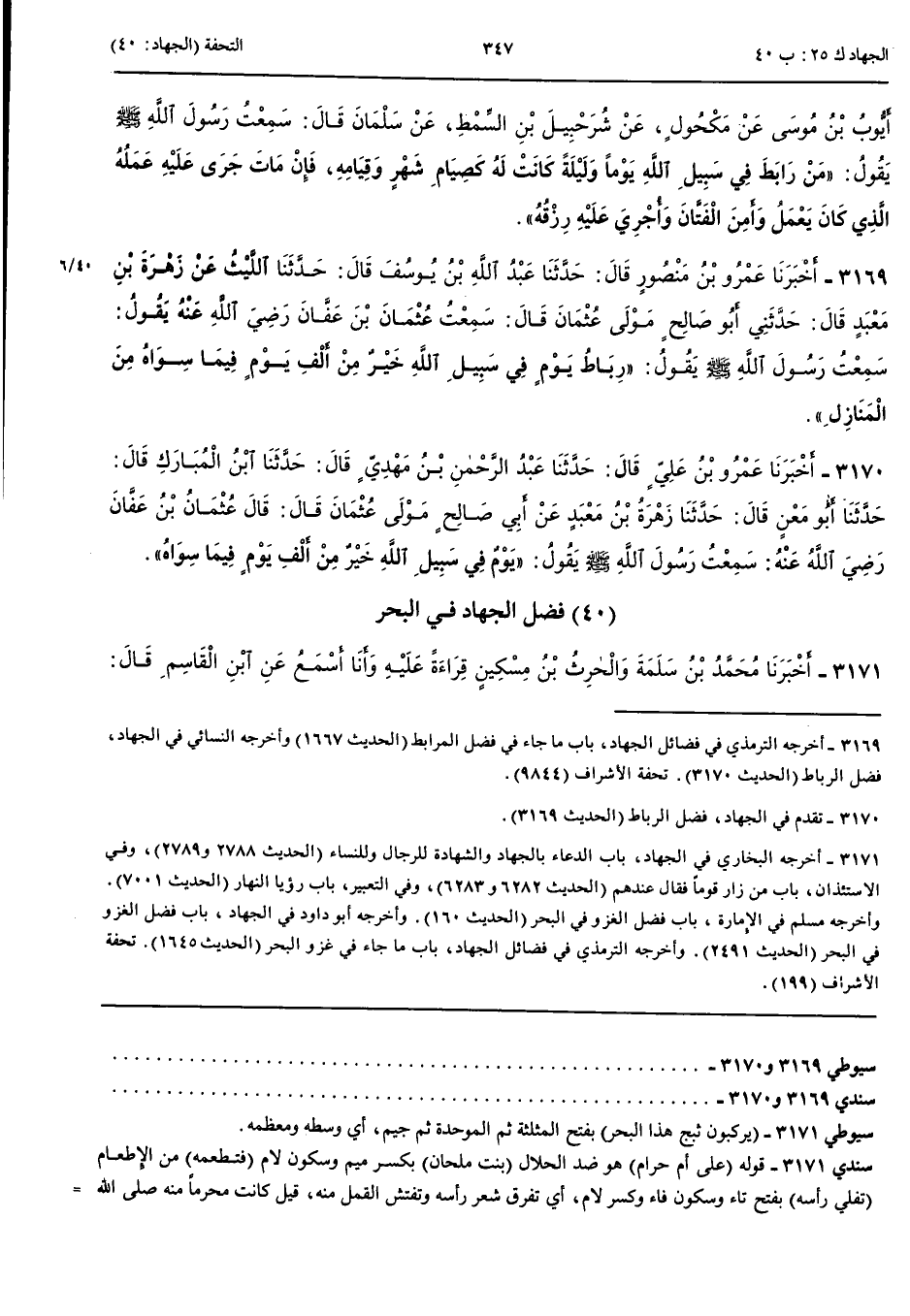 3170 - أَخْبَرَنَا عَمْرُو بْنُ عَلِيٍّ قَالَ حَدَّثَنَا عَبْدُ الرَّحْمَنِ بْنُ مَهْدِيٍّ قَالَ حَدَّثَنَا ابْنُ الْمُبَارَكِ قَالَ حَدَّثَنَا أَبُو مَعْنٍ قَالَ حَدَّثَنَا زُهْرَةُ بْنُ مَعْبَدٍ عَنْ أَبِي صَالِحٍ مَوْلَى عُثْمَانَ قَالَ قَالَ عُثْمَانُ بْنُ عَفَّانَ رَضِيَ اللَّهُ عَنْهُ سَمِعْتُ رَسُولَ اللَّهِ صَلَّى اللَّهُ عَلَيْهِ وَسَلَّمَ يَقُولُ يَوْمٌ فِي سَبِيلِ اللَّهِ خَيْرٌ مِنْ أَلْفِ يَوْمٍ فِيمَا سِوَاهُ