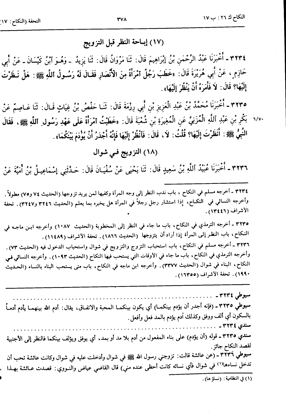3235 - أَخْبَرَنَا مُحَمَّدُ بْنُ عَبْدِ الْعَزِيزِ بْنِ أَبِي رِزْمَةَ قَالَ حَدَّثَنَا حَفْصُ بْنُ غِيَاثٍ قَالَ حَدَّثَنَا عَاصِمٌ عَنْ بَكْرِ بْنِ عَبْدِ اللَّهِ الْمُزَنِيِّ عَنْ الْمُغِيرَةِ بْنِ شُعْبَةَ قَالَ خَطَبْتُ امْرَأَةً عَلَى عَهْدِ رَسُولِ اللَّهِ صَلَّى اللَّهُ عَلَيْهِ وَسَلَّمَ فَقَالَ النَّبِيُّ صَلَّى اللَّهُ عَلَيْهِ وَسَلَّمَ أَنَظَرْتَ إِلَيْهَا قُلْتُ لَا قَالَ فَانْظُرْ إِلَيْهَا فَإِنَّهُ أَجْدَرُ أَنْ يُؤْدَمَ بَيْنَكُمَا