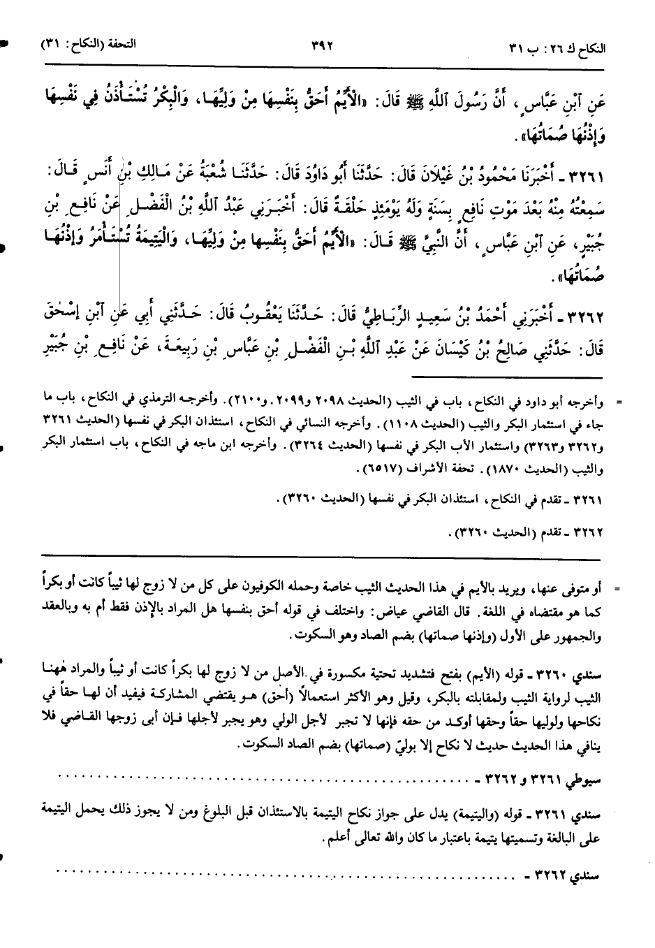 3261 - أَخْبَرَنَا مَحْمُودُ بْنُ غَيْلَانَ قَالَ حَدَّثَنَا أَبُو دَاوُدَ قَالَ حَدَّثَنَا شُعْبَةُ عَنْ مَالِكِ بْنِ أَنَسٍ قَالَ سَمِعْتُهُ مِنْهُ بَعْدَ مَوْتِ نَافِعٍ بِسَنَةٍ وَلَهُ يَوْمَئِذٍ حَلْقَةٌ قَالَ أَخْبَرَنِي عَبْدُ اللَّهِ بْنُ الْفَضْلِ عَنْ نَافِعِ بْنِ جُبَيْرٍ عَنْ ابْنِ عَبَّاسٍ أَنَّ النَّبِيَّ صَلَّى اللَّهُ عَلَيْهِ وَسَلَّمَ قَالَ الْأَيِّمُ أَحَقُّ بِنَفْسِهَا مِنْ وَلِيِّهَا وَالْيَتِيمَةُ تُسْتَأْمَرُ وَإِذْنُهَا صُمَاتُهَا