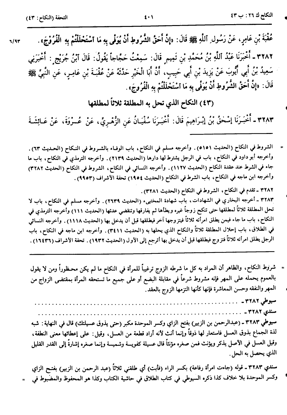 3282 - أَخْبَرَنَا عَبْدُ اللَّهِ بْنُ مُحَمَّدِ بْنِ تَمِيمٍ قَالَ سَمِعْتُ حَجَّاجًا يَقُولُ قَالَ ابْنُ جُرَيْجٍ أَخْبَرَنِي سَعِيدُ بْنُ أَبِي أَيُّوبَ عَنْ يَزِيدَ بْنِ أَبِي حَبِيبٍ أَنَّ أَبَا الْخَيْرِ حَدَّثَهُ عَنْ عُقْبَةَ بْنِ عَامِرٍ عَنْ النَّبِيِّ صَلَّى اللَّهُ عَلَيْهِ وَسَلَّمَ قَالَ إِنَّ أَحَقَّ الشُّرُوطِ أَنْ يُوَفَّى بِهِ مَا اسْتَحْلَلْتُمْ بِهِ الْفُرُوجَ