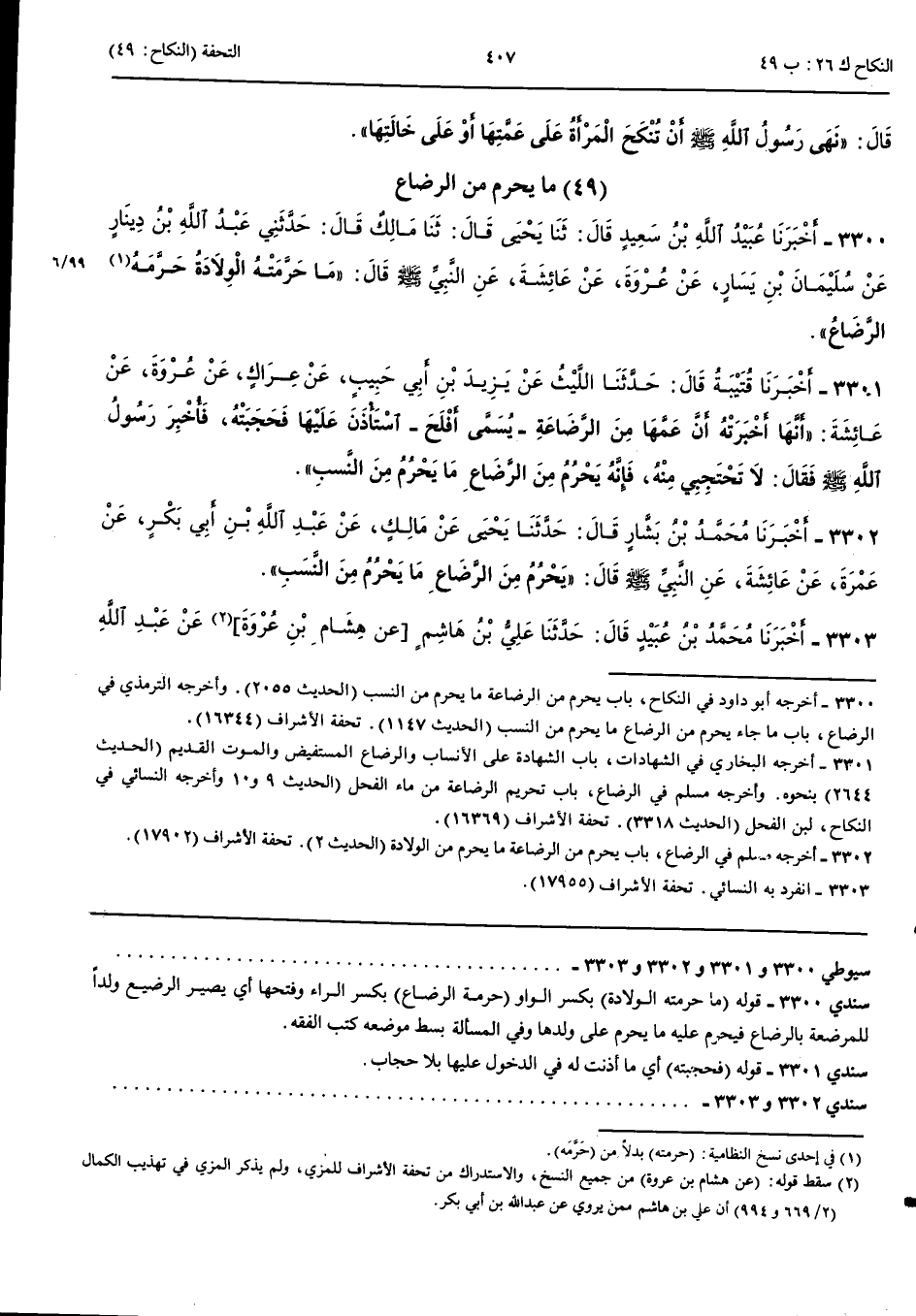 3301 - أَخْبَرَنَا قُتَيْبَةُ قَالَ حَدَّثَنَا اللَّيْثُ عَنْ يَزِيدَ بْنِ أَبِي حَبِيبٍ عَنْ عِرَاكٍ عَنْ عُرْوَةَ عَنْ عَائِشَةَ أَنَّهَا أَخْبَرَتْهُ أَنَّ عَمَّهَا مِنْ الرَّضَاعَةِ يُسَمَّى أَفْلَحَ اسْتَأْذَنَ عَلَيْهَا فَحَجَبَتْهُ فَأُخْبِرَ رَسُولُ اللَّهِ صَلَّى اللَّهُ عَلَيْهِ وَسَلَّمَ فَقَالَ لَا تَحْتَجِبِي مِنْهُ فَإِنَّهُ يَحْرُمُ مِنْ الرَّضَاعِ مَا يَحْرُمُ مِنْ النَّسَبِ