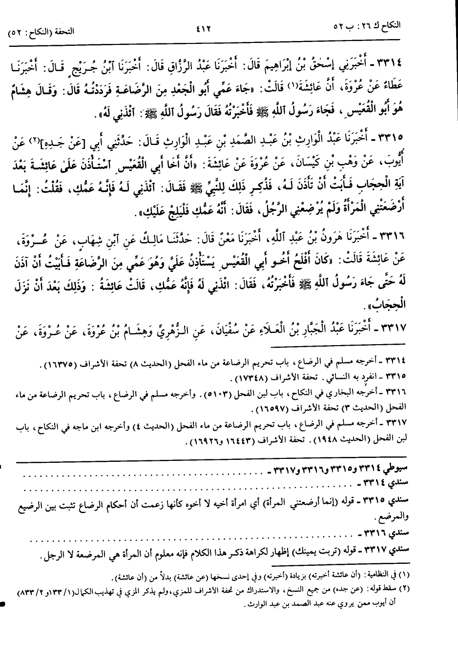 3317 - أَخْبَرَنَا عَبْدُ الْجَبَّارِ بْنُ الْعَلَاءِ عَنْ سُفْيَانَ عَنْ الزُّهْرِيِّ وَهِشَامُ بْنُ عُرْوَةَ عَنْ عُرْوَةَ عَنْ عَائِشَةَ قَالَتْ اسْتَأْذَنَ عَلَيَّ عَمِّي أَفْلَحُ بَعْدَمَا نَزَلَ الْحِجَابُ فَلَمْ آذَنْ لَهُ فَأَتَانِي النَّبِيُّ صَلَّى اللَّهُ عَلَيْهِ وَسَلَّمَ فَسَأَلْتُهُ فَقَالَ ائْذَنِي لَهُ فَإِنَّهُ عَمُّكِ قُلْتُ يَا رَسُولَ اللَّهِ إِنَّمَا أَرْضَعَتْنِي الْمَرْأَةُ وَلَمْ يُرْضِعْنِي الرَّجُلُ قَالَ ائْذَنِي لَهُ تَرِبَتْ يَمِينُكِ فَإِنَّهُ عَمُّكِ