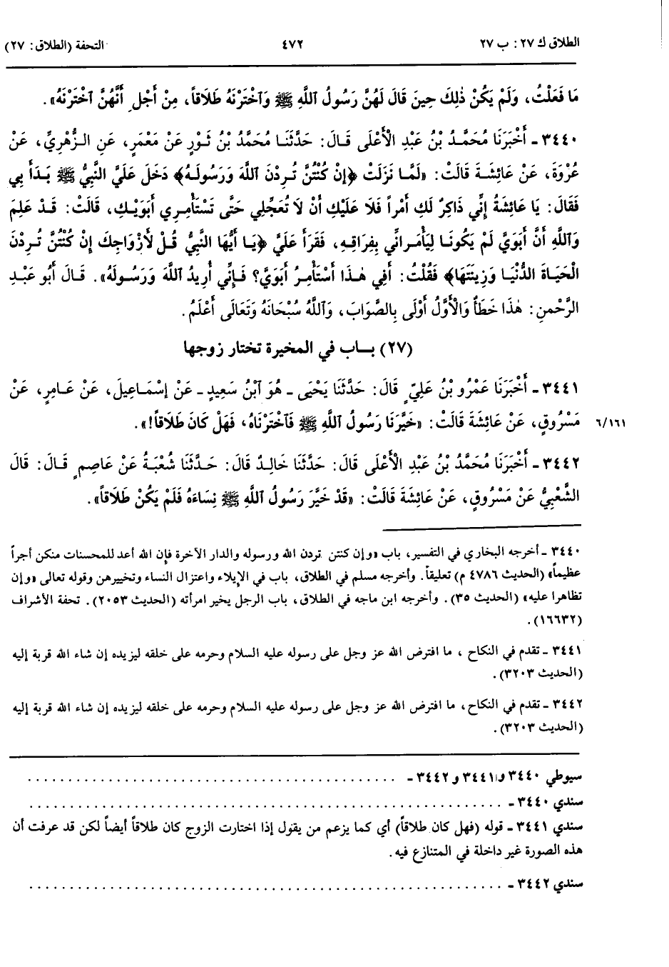 3442 - أَخْبَرَنَا مُحَمَّدُ بْنُ عَبْدِ الْأَعْلَى قَالَ حَدَّثَنَا خَالِدٌ قَالَ حَدَّثَنَا شُعْبَةُ عَنْ عَاصِمٍ قَالَ قَالَ الشَّعْبِيُّ عَنْ مَسْرُوقٍ عَنْ عَائِشَةَ قَالَتْ قَدْ خَيَّرَ رَسُولُ اللَّهِ صَلَّى اللَّهُ عَلَيْهِ وَسَلَّمَ نِسَاءَهُ فَلَمْ يَكُنْ طَلَاقًا