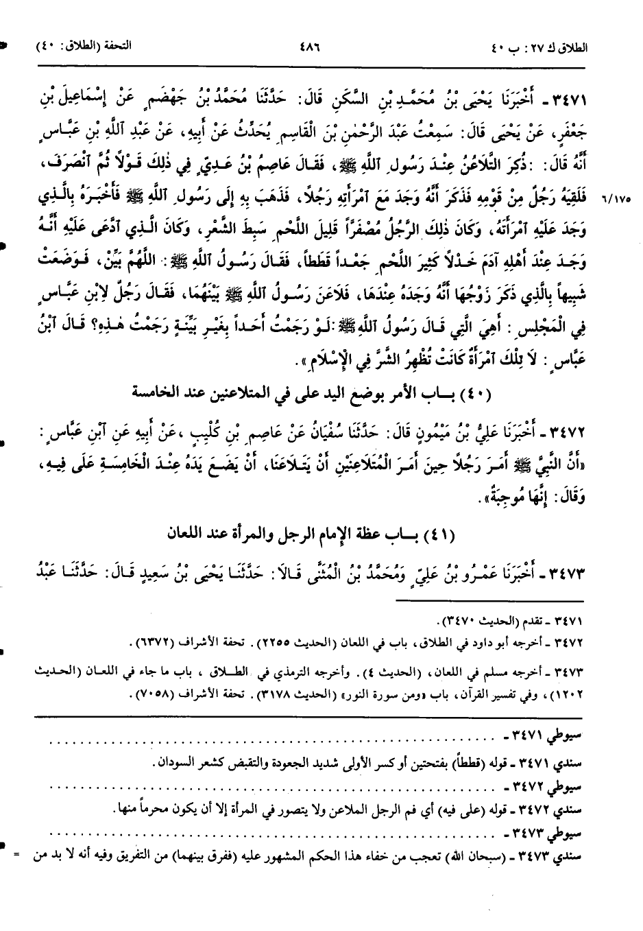 بَاب الْأَمْرِ بِوَضْعِ الْيَدِ عَلَى فِي الْمُتَلَاعِنَيْنِ عِنْدَ الْخَامِسَةِ 3472 - أَخْبَرَنَا عَلِيُّ بْنُ مَيْمُونٍ قَالَ حَدَّثَنَا سُفْيَانُ عَنْ عَاصِمِ بْنِ كُلَيْبٍ عَنْ أَبِيهِ عَنْ ابْنِ عَبَّاسٍ أَنَّ النَّبِيَّ صَلَّى اللَّهُ عَلَيْهِ وَسَلَّمَ أَمَرَ رَجُلًا حِينَ أَمَرَ الْمُتَلَاعِنَيْنِ أَنْ يَتَلَاعَنَا أَنْ يَضَعَ يَدَهُ عِنْدَ الْخَامِسَةِ عَلَى فِيهِ وَقَالَ إِنَّهَا مُوجِبَةٌ