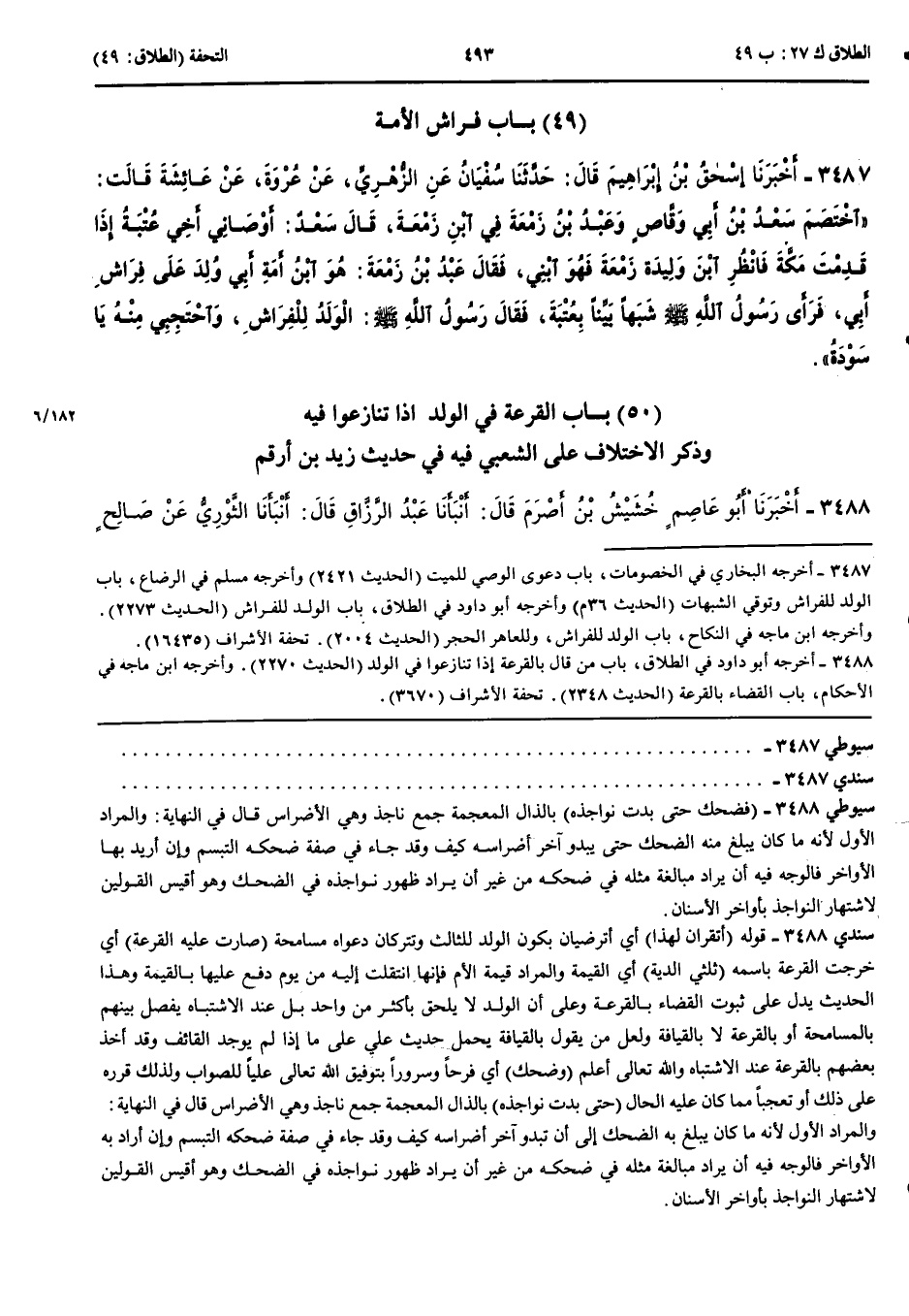بَاب الْقُرْعَةِ فِي الْوَلَدِ إِذَا تَنَازَعُوا فِيهِ وَذِكْرِ الِاخْتِلَافِ عَلَى الشَّعْبِيِّ فِيهِ فِي حَدِيثِ زَيْدِ بْنِ أَرْقَمَ 3488 - أَخْبَرَنَا أَبُو عَاصِمٍ خُشَيْشُ بْنُ أَصْرَمَ قَالَ أَنْبَأَنَا عَبْدُ الرَّزَّاقِ قَالَ أَنْبَأَنَا الثَّوْرِيُّ عَنْ صَالِحٍ الْهَمْدَانِيِّ عَنْ الشَّعْبِيِّ عَنْ عَبْدِ خَيْرٍ عَنْ زَيْدِ بْنِ أَرْقَمَ قَالَ أُتِيَ عَلِيٌّ رَضِيَ اللَّهُ عَنْهُ بِثَلَاثَةٍ وَهُوَ بِالْيَمَنِ وَقَعُوا عَلَى امْرَأَةٍ فِي طُهْرٍ وَاحِدٍ فَسَأَلَ اثْنَيْنِ أَتُقِرَّانِ لِهَذَا بِالْوَلَدِ قَالَا لَا ثُمَّ سَأَلَ اثْنَيْنِ أَتُقِرَّانِ لِهَذَا بِالْوَلَدِ قَالَا لَا فَأَقْرَعَ بَيْنَهُمْ فَأَلْحَقَ الْوَلَدَ بِالَّذِي صَارَتْ عَلَيْهِ الْقُرْعَةُ وَجَعَلَ عَلَيْهِ ثُلُثَيْ الدِّيَةِ فَذُكِرَ ذَلِكَ لِلنَّبِيِّ صَلَّى اللَّهُ عَلَيْهِ وَسَلَّمَ فَضَحِكَ حَتَّى بَدَتْ نَوَاجِذُهُ 3489 - أَخْبَرَنَا عَلِيُّ بْنُ حُجْرٍ قَالَ حَدَّثَنَا عَلِيُّ بْنُ مُسْهِرٍ عَنْ الْأَجْلَحِ عَنْ الشَّعْبِيِّ قَالَ أَخْبَرَنِي عَبْدُ اللَّهِ بْنُ أَبِي الْخَلِيلِ الْحَضْرَمِيُّ عَنْ زَيْدِ بْنِ أَرْقَمَ قَالَ بَيْنَا نَحْنُ عِنْدَ رَسُولِ اللَّهِ صَلَّى اللَّهُ عَلَيْهِ وَسَلَّمَ إِذْ جَاءَهُ رَجُلٌ مِنْ الْيَمَنِ فَجَعَلَ يُخْبِرُهُ وَيُحَدِّثُهُ وَعَلِيٌّ بِهَا فَقَالَ يَا رَسُولَ اللَّهِ أَتَى عَلِيًّا ثَلَاثَةُ نَفَرٍ يَخْتَصِمُونَ فِي وَلَدٍ وَقَعُوا عَلَى امْرَأَةٍ فِي طُهْرٍ وَسَاقَ الْحَدِيثَ