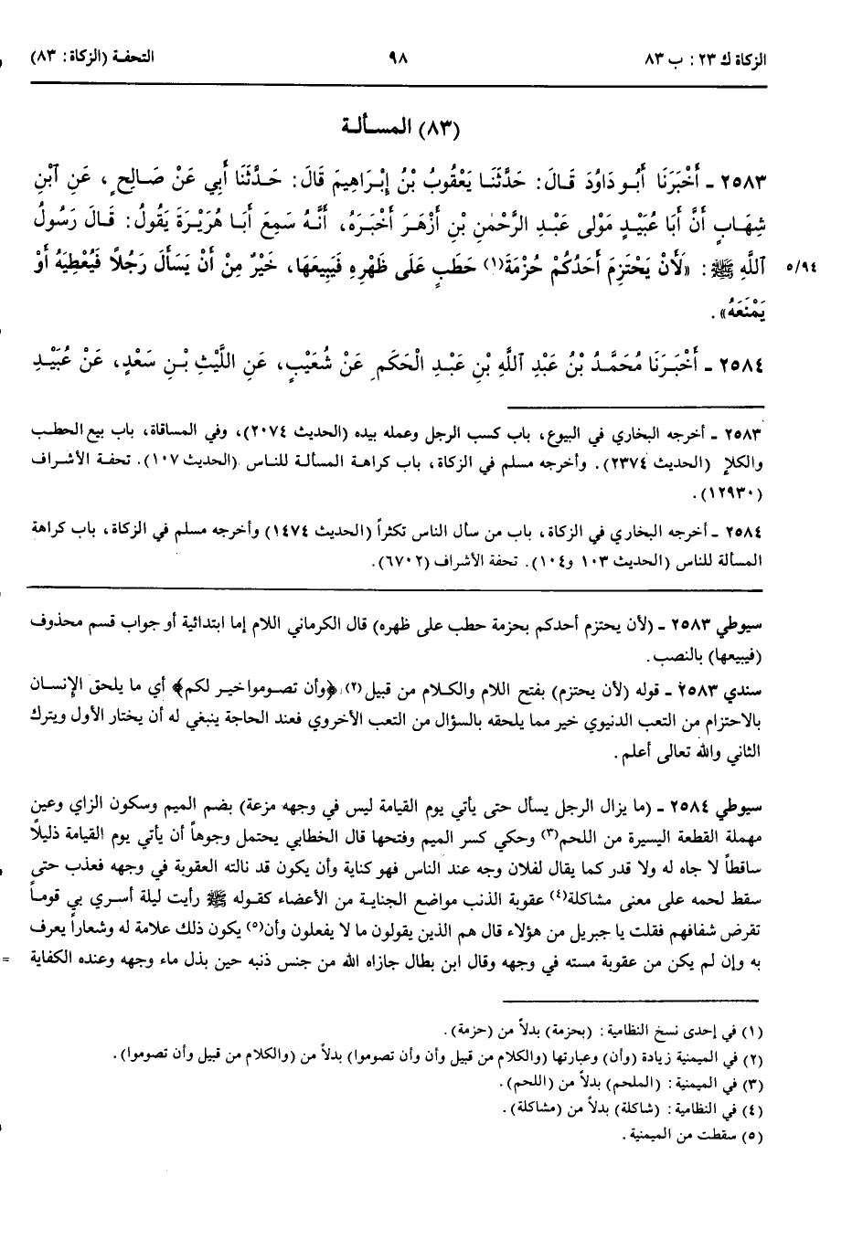 الْمَسْأَلَةُ 2583 - أَخْبَرَنَا أَبُو دَاوُدَ قَالَ حَدَّثَنَا يَعْقُوبُ بْنُ إِبْرَاهِيمَ قَالَ حَدَّثَنَا أَبِي عَنْ صَالِحٍ عَنْ ابْنِ شِهَابٍ أَنَّ أَبَا عُبَيْدٍ مَوْلَى عَبْدِ الرَّحْمَنِ بْنِ أَزْهَرَ أَخْبَرَهُ أَنَّهُ سَمِعَ أَبَا هُرَيْرَةَ يَقُولُ قَالَ رَسُولُ اللَّهِ صَلَّى اللَّهُ عَلَيْهِ وَسَلَّمَ لَأَنْ يَحْتَزِمَ أَحَدُكُمْ حُزْمَةَ حَطَبٍ عَلَى ظَهْرِهِ فَيَبِيعَهَا خَيْرٌ مِنْ أَنْ يَسْأَلَ رَجُلًا فَيُعْطِيَهُ أَوْ يَمْنَعَهُ