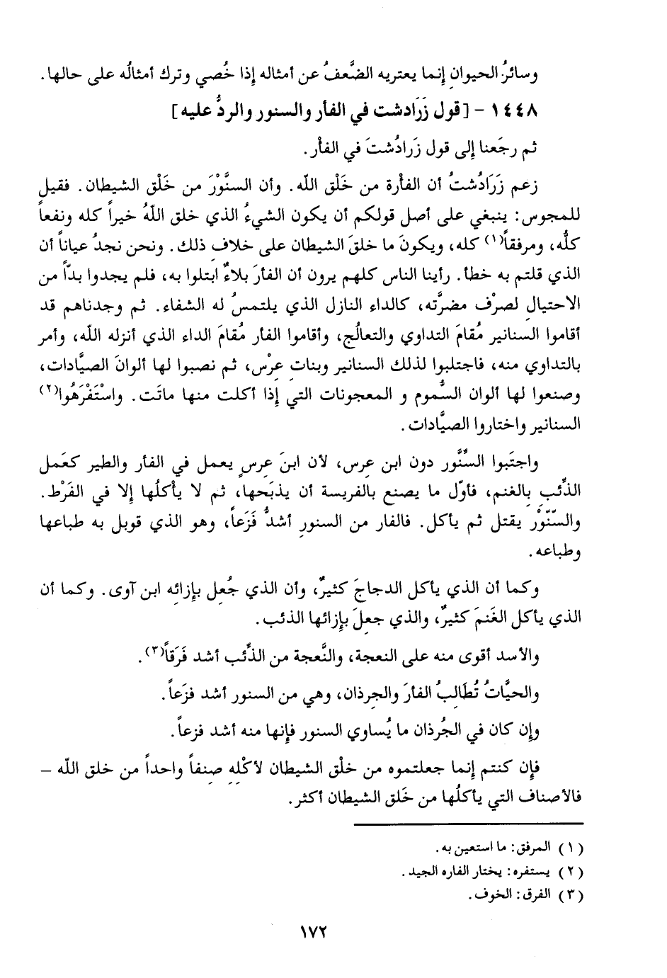 1448-[قول زرادشت في الفأر والسنور والردّ عليه]