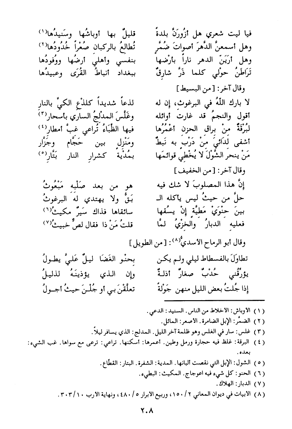 [2] الضمّر: الإبل الضامرة. الأصعر: المائل.