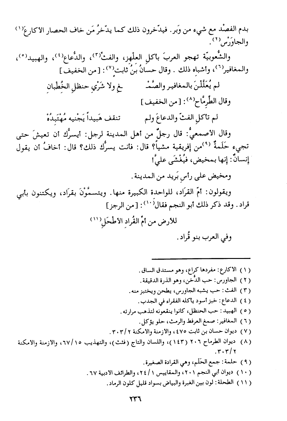 والشّعوبيّة تهجو العرب بأكل العلهز، والفثّ [3] ، والدّعاع [4] ، والهبيد [5] ، والمغافير [6] ، وأشباه ذلك. وقال حسان بن ثابت [7] : [من الخفيف]