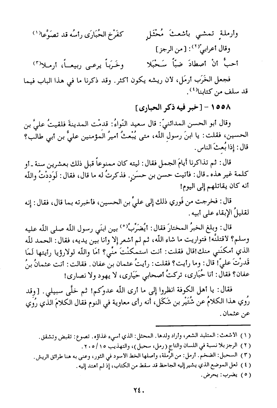 [3] السحبل: الضخم. أرمل: من الرّملة، وأصلها الخط الأسود في الثور، وعنى به هنا طرائق الريش.